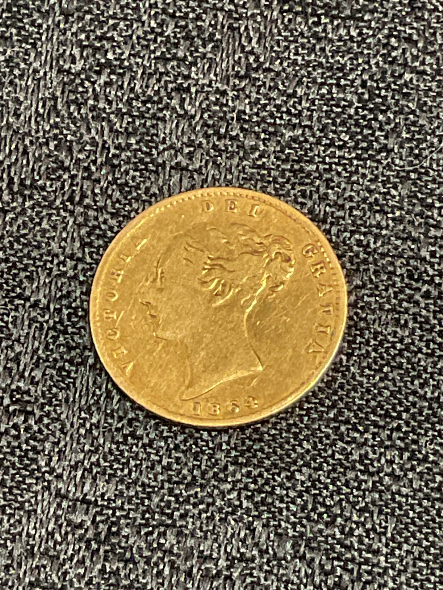 This is an 1864 Victoria Half Sovereign, a classic example of British gold coinage from the Victorian era. The coin features a portrait of Queen Victoria on the obverse and a design depicting a shield of the Royal Arms on the reverse. Half Sovereigns were popular for everyday transactions and as a store of wealth, and this particular example offers a glimpse into the economic and social history of the time.