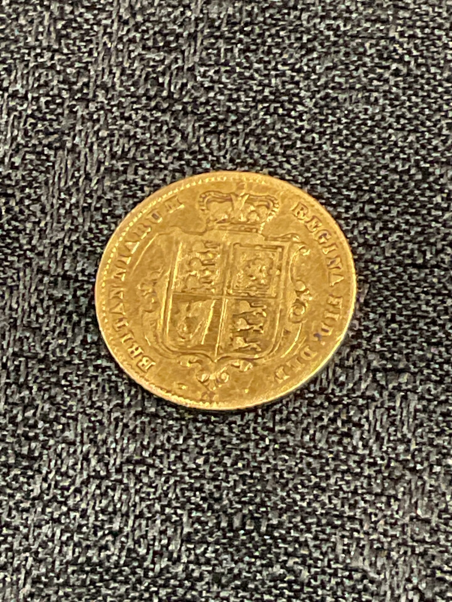This 1864 Victoria Half Sovereign shows signs of wear consistent with its age and circulation. The coin retains much of its original golden lustre, and the details of the portrait and shield are still clearly visible. This coin would be of interest to collectors of British coinage, Victorian history enthusiasts, or those looking to invest in precious metals.