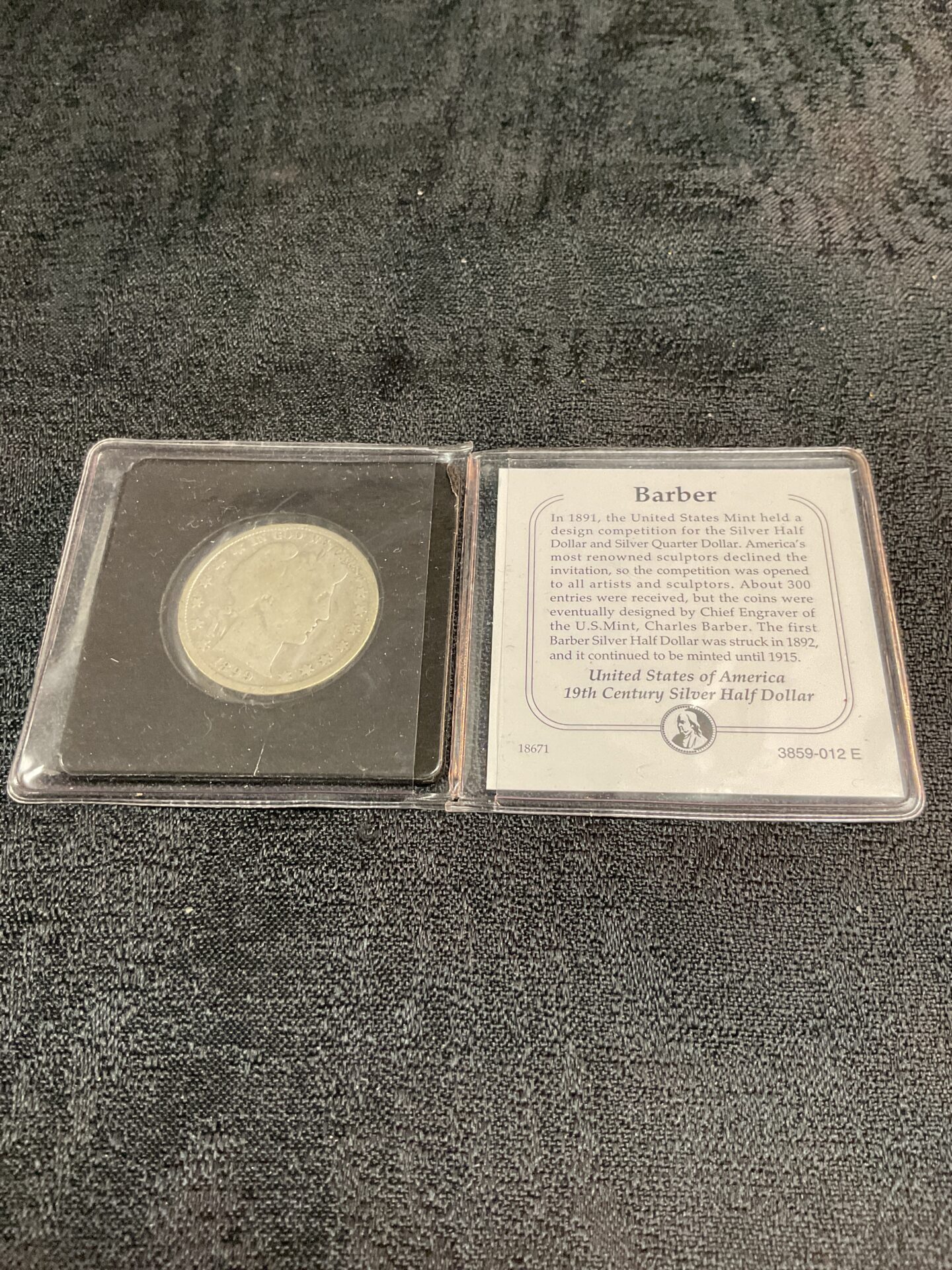 This coin is presented in a protective holder, preserving its condition for display or further evaluation. While a detailed grading would require professional assessment, the coin exhibits details consistent with its age and circulation. This 1891 Barber Half Dollar would be a valuable addition to any collection of American silver coinage, offering a glimpse into the history of US currency and design.