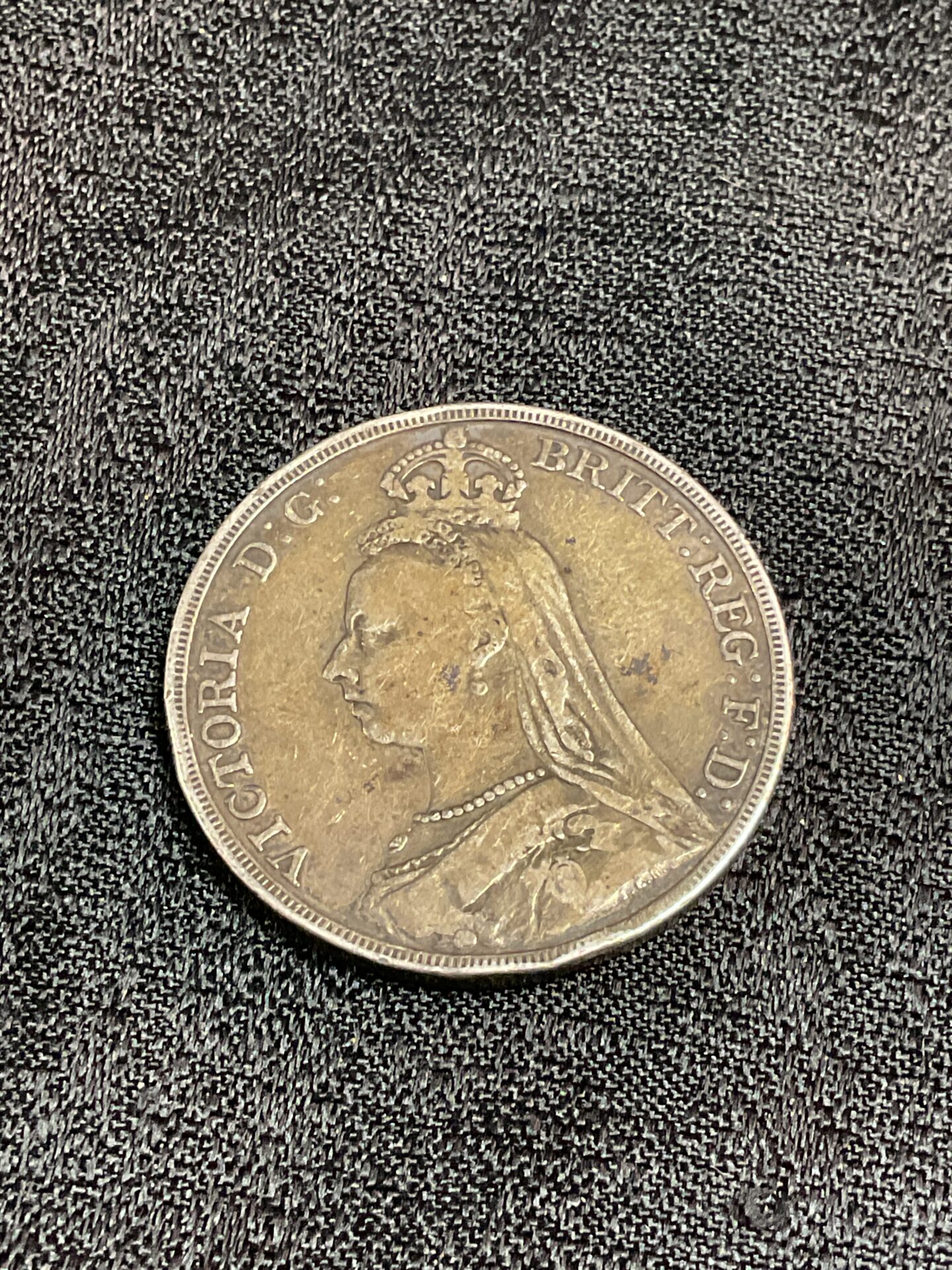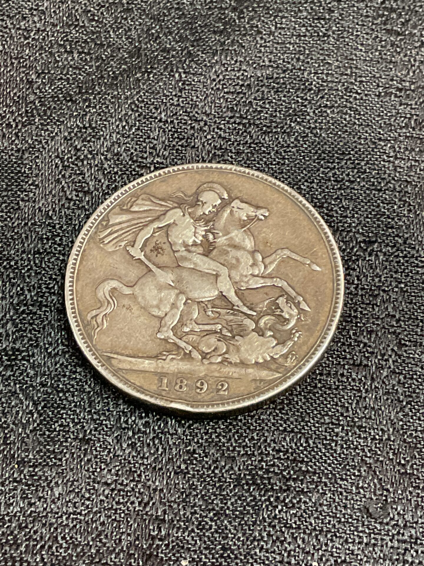 This is a beautiful silver crown dating back to 1892, during the reign of Queen Victoria. The coin features a detailed portrait of Queen Victoria on the obverse, with the inscription “VICTORIA D.G. BRIT. REG. F.D.” The reverse depicts a design emblematic of the United Kingdom, showcasing a crowned shield and various heraldic symbols. This coin is a classic example of Victorian coinage, representing a significant period in British history.