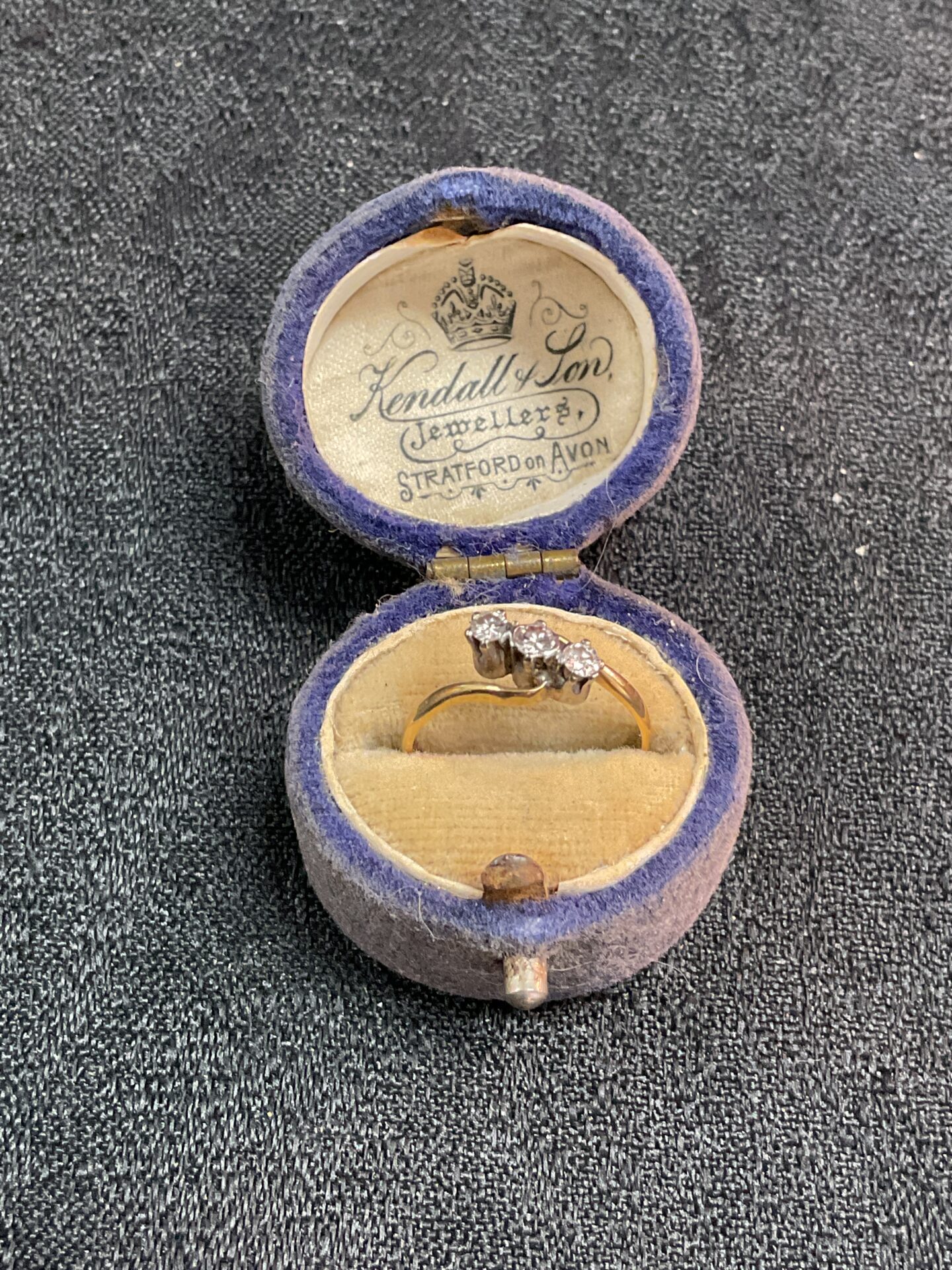 895 18ct Yellow Gold Trilogy Ring Platinum Set With Three Diamonds 1948 1.5g Size K