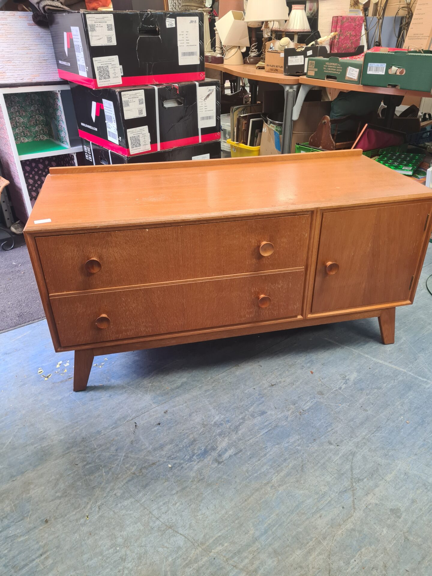 This Merredew cabinet is in good vintage condition, showing some signs of wear consistent with its age. The teak wood retains its rich colour, and the cabinet remains structurally sound. This piece would be a welcome addition to any mid-century modern collection or for those seeking a retro touch for their home. Its classic design and quality construction ensure it will remain a stylish and functional piece for years to come.