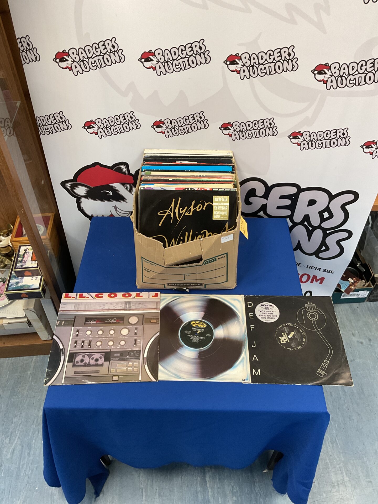 The condition of these records varies, with some showing signs of wear consistent with age and use. While the records have not been individually inspected for playability, they present as a visually interesting lot for collectors. This collection is ideal for DJs, music enthusiasts, or those seeking to add a piece of 1980s musical history to their collection.