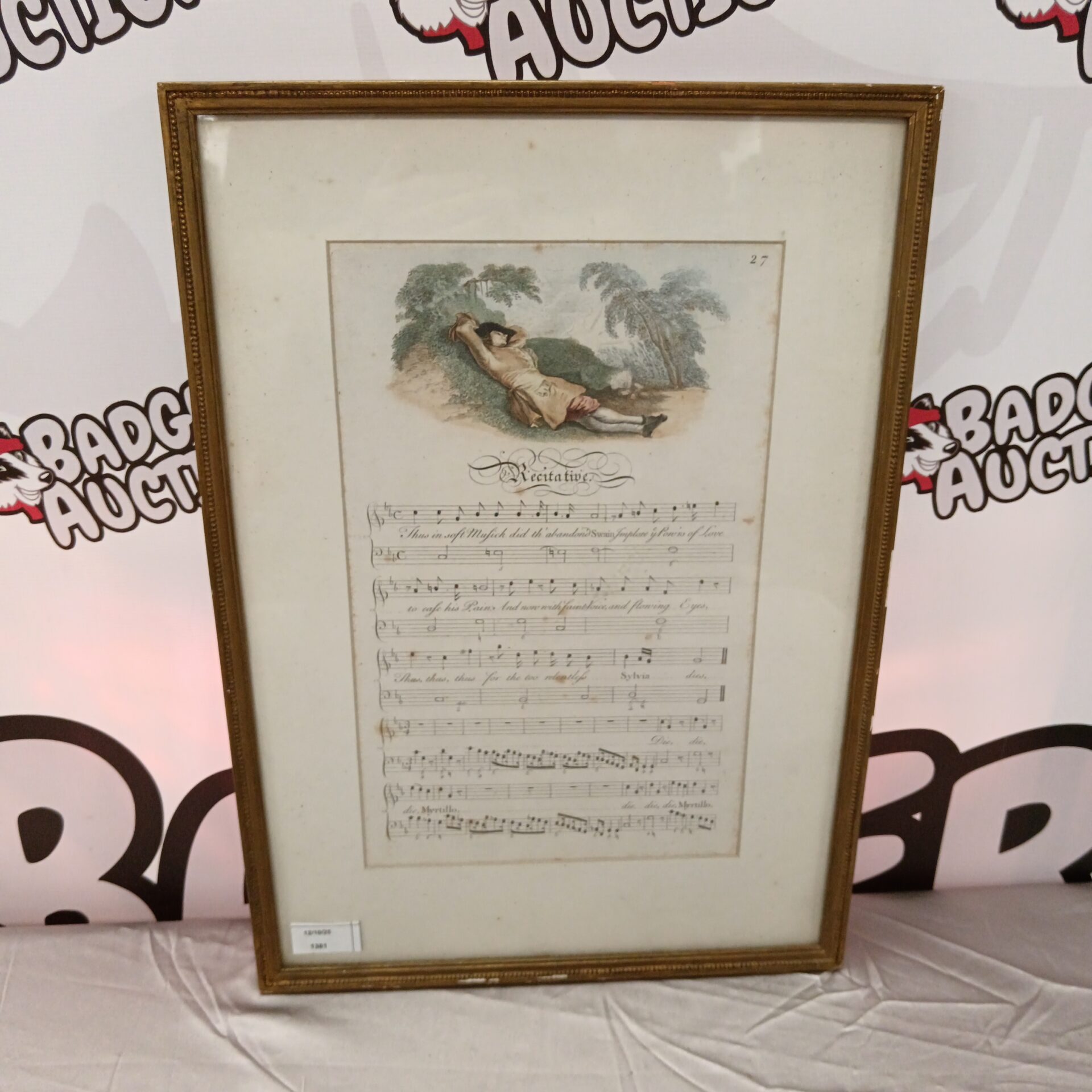 724 18th/19th Century Framed Song Sheet With Vignett Portrait Of Sleeping Man
