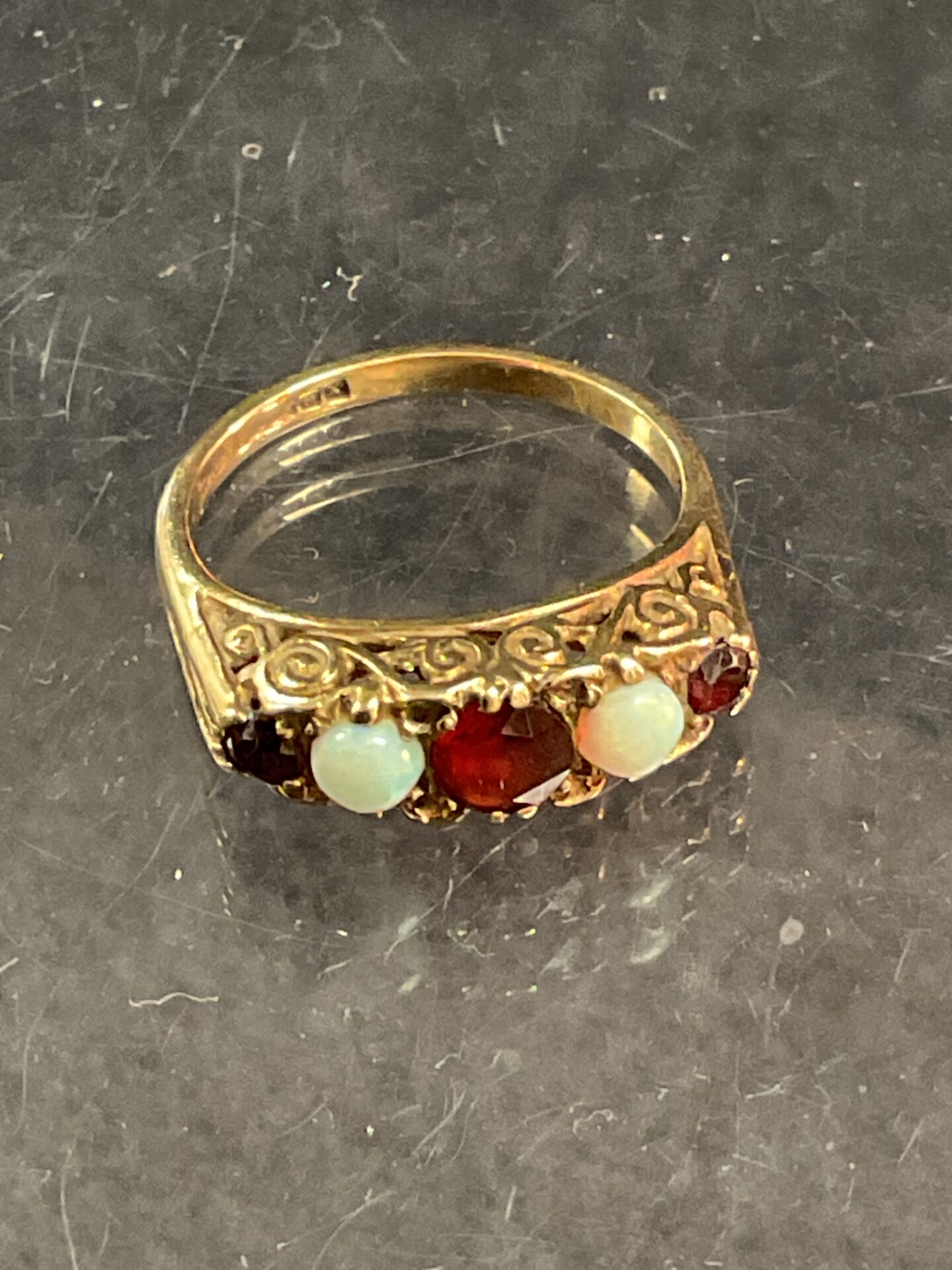Vintage 9 Carat Garnet and Fire Apple Ring