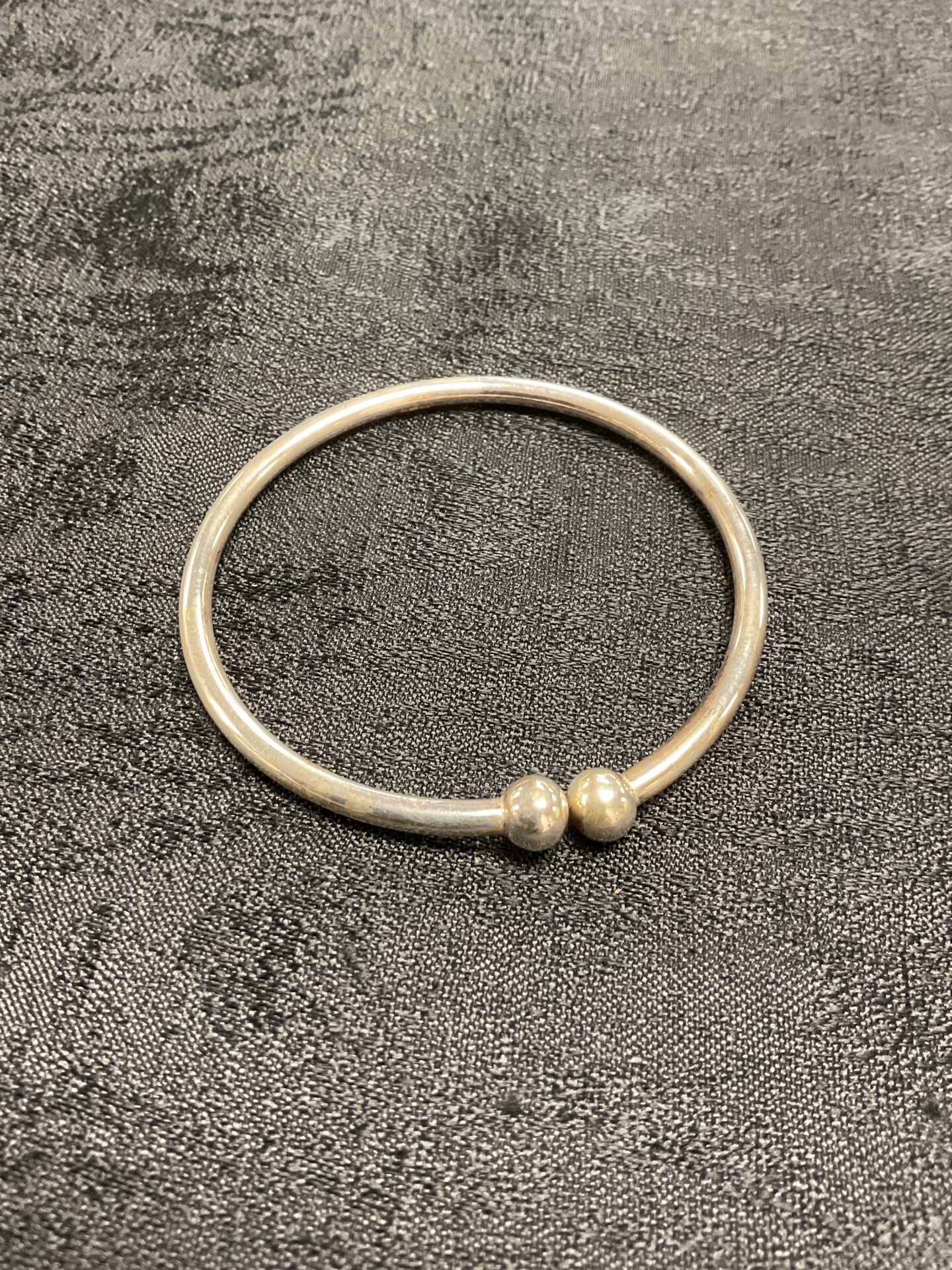 This bracelet appears to be in gently used condition, with minimal signs of wear. The silver retains its shine, and the ball ends are securely attached. This piece would appeal to collectors of sterling silver jewellery or those seeking a timeless, understated accessory. Its simple design makes it a versatile addition to any jewellery collection.