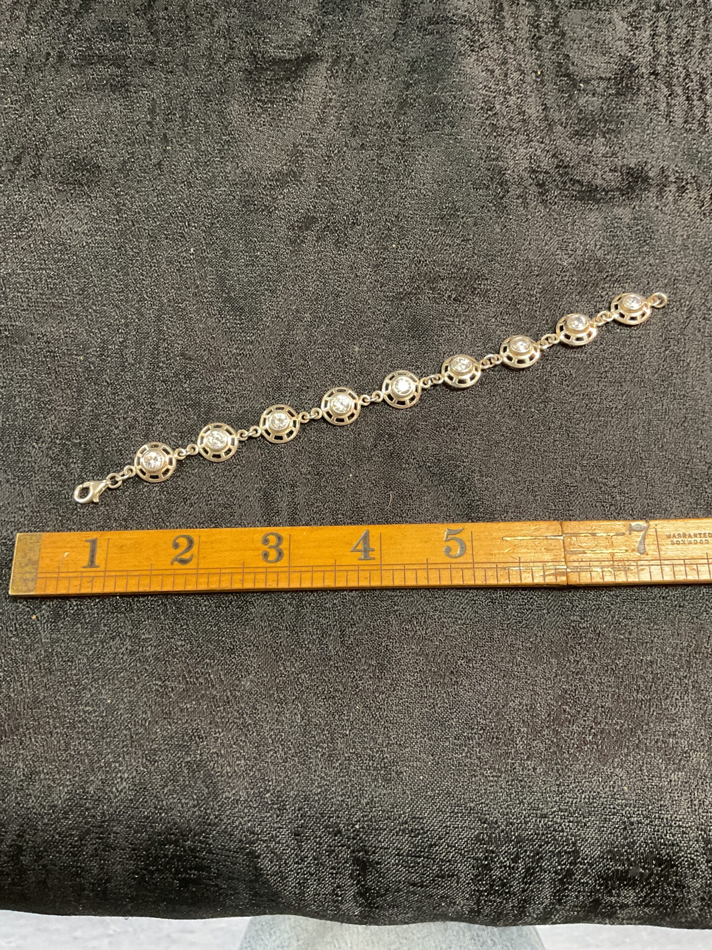This bracelet is in good condition, ready to be enjoyed or added to a collection. The stones appear secure and the silver shows minimal signs of wear. Its classic design and quality materials make it a desirable piece for jewellery enthusiasts and collectors alike. This bracelet offers a timeless aesthetic and enduring value.