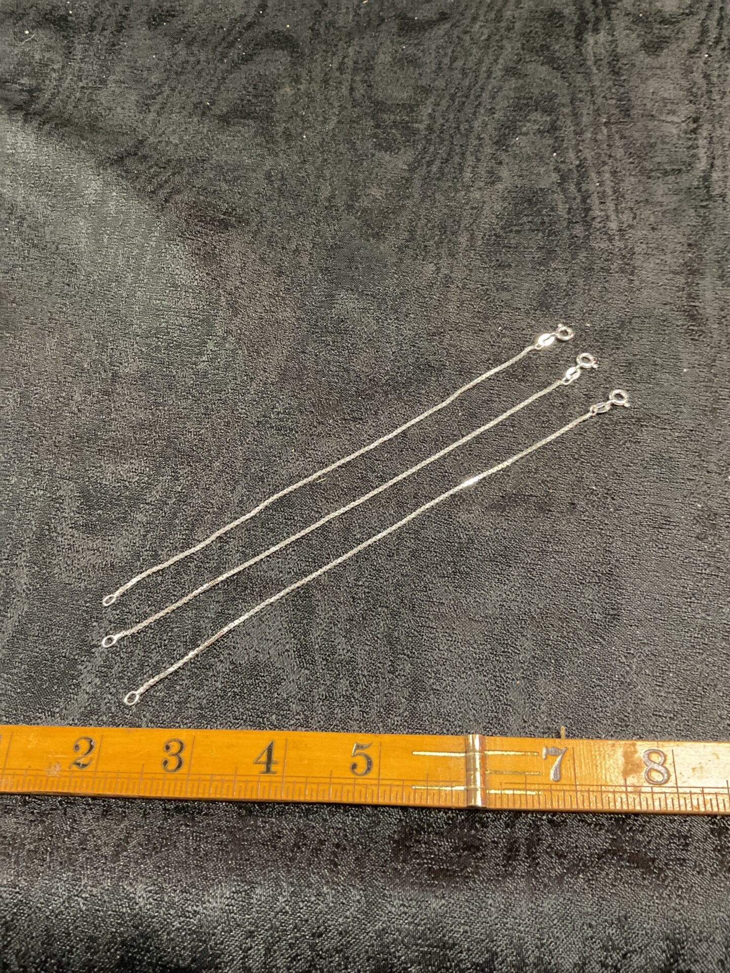 These are three delicate bracelets crafted from 925 sterling silver. Each bracelet features a fine chain design, offering a minimalist and elegant aesthetic. The simple yet refined construction makes them versatile pieces suitable for everyday wear or layering with other jewellery.