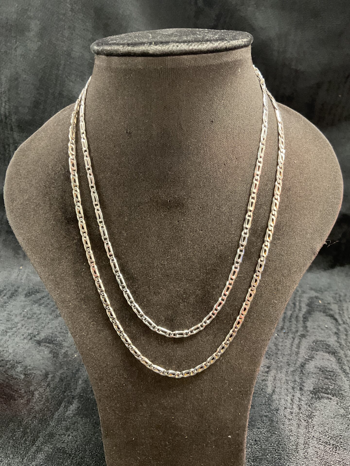 These silver chain necklaces appear to be in good condition, ready for wear or display. The classic style and quality silver construction make them appealing to collectors of vintage or contemporary jewellery. Their versatile length options add to their desirability, offering flexibility in styling.