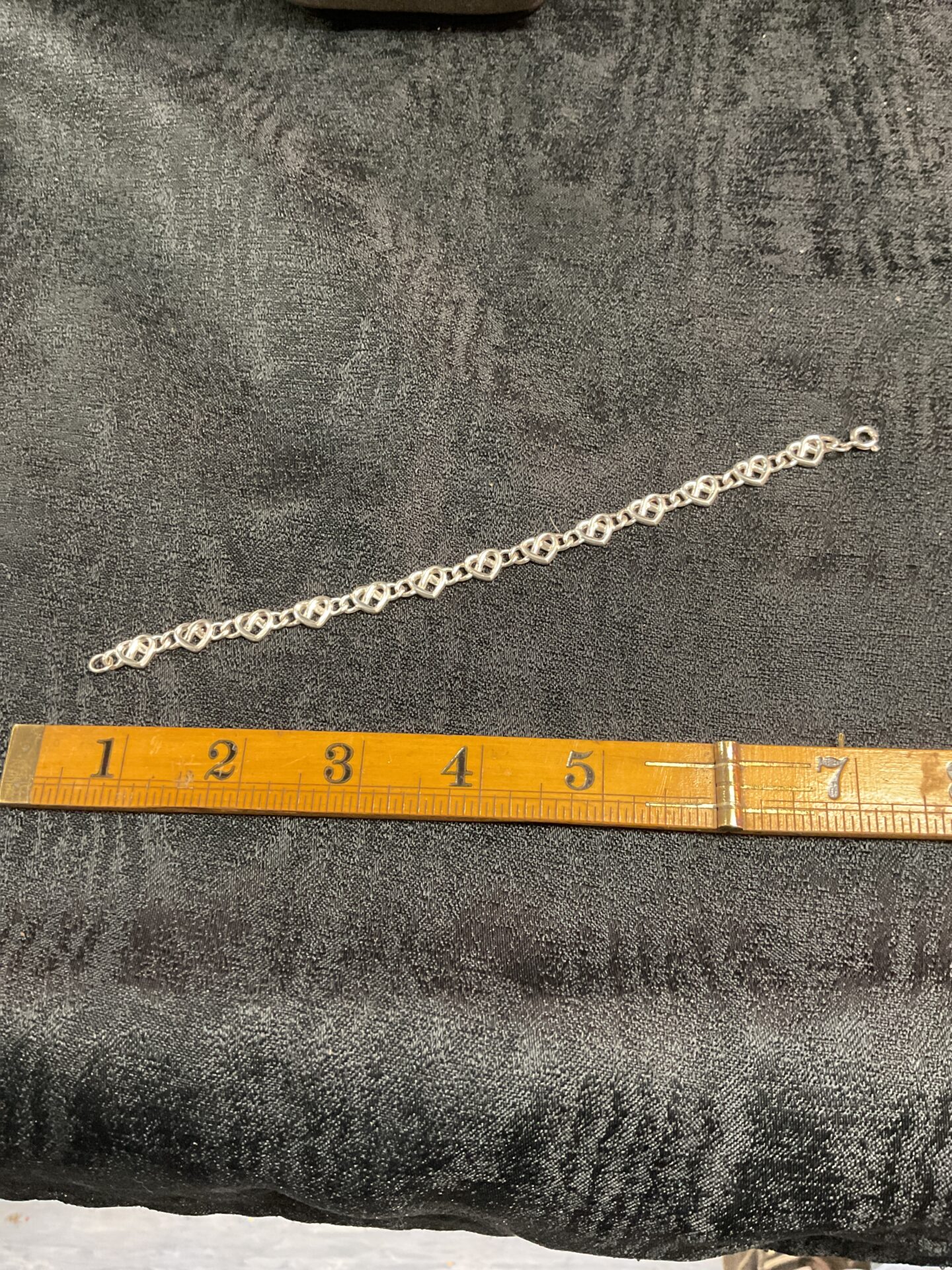 This bracelet presents with signs consistent with age and previous use. While the silver retains its lustre, there may be minor surface scratches or imperfections visible upon close inspection. This bracelet may appeal to collectors of silver jewellery or those seeking a vintage-inspired piece with character.