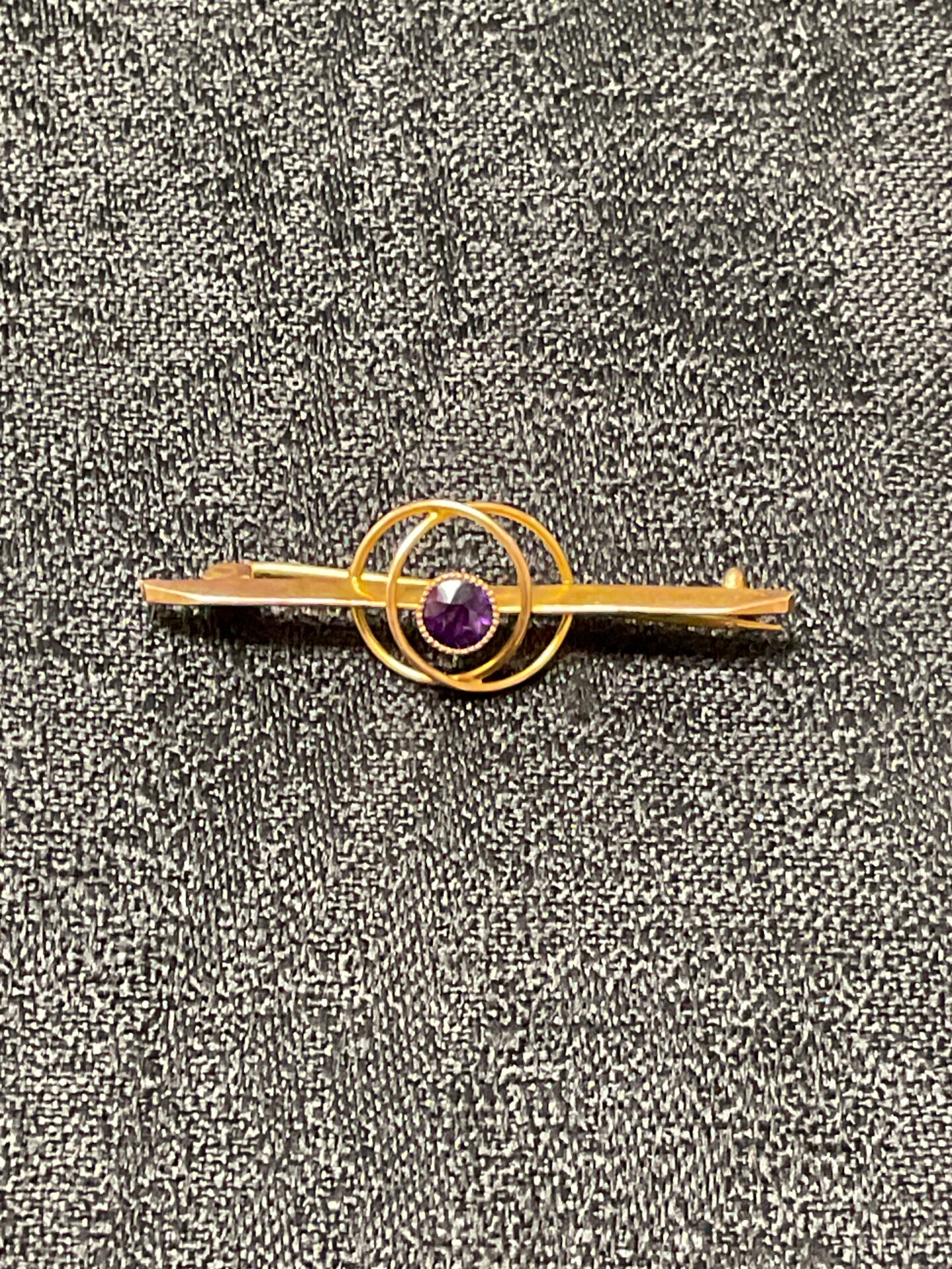 The brooch is in good vintage condition, displaying the expected wear consistent with its age. It retains its original charm and is a desirable piece for collectors of vintage jewellery or those seeking a unique and timeless accessory. The combination of 9ct gold and a vibrant garnet makes this brooch a beautiful and enduring addition to any collection.