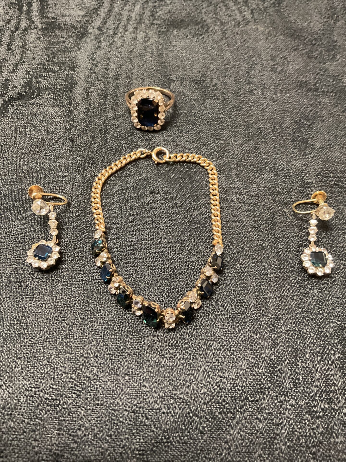 This exquisite jewellery set is crafted from 9ct gold and features a matching bracelet, ring, and pair of earrings. The set boasts a classic design, with a row of sparkling stones set into each piece. The stones add a touch of elegance and sophistication, making this set perfect for both everyday wear and special occasions. The total weight of the set is 17.02g.