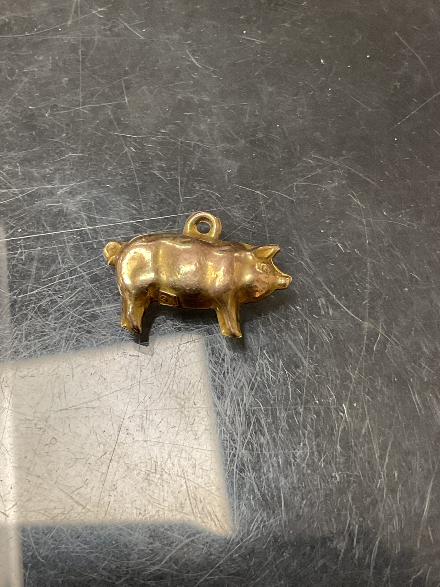 The charm is in good condition, ready to be enjoyed or added to a collection. Its small size and detailed craftsmanship make it a desirable item for collectors of animal charms or vintage jewellery. This 9ct gold pig charm offers a charming and enduring addition to any jewellery collection.