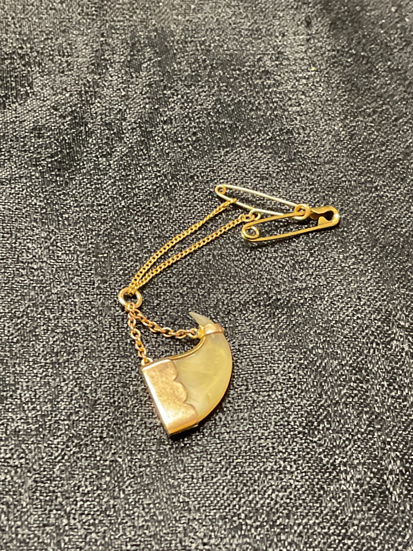 The pendant is in good condition, displaying the natural wear expected of a vintage piece. The gold mounting appears secure and well-maintained. This unique item would appeal to collectors of antique jewellery, animal-themed pieces, or those seeking a distinctive and conversation-starting accessory. The combination of the natural claw and the 9ct gold makes it a truly special find.