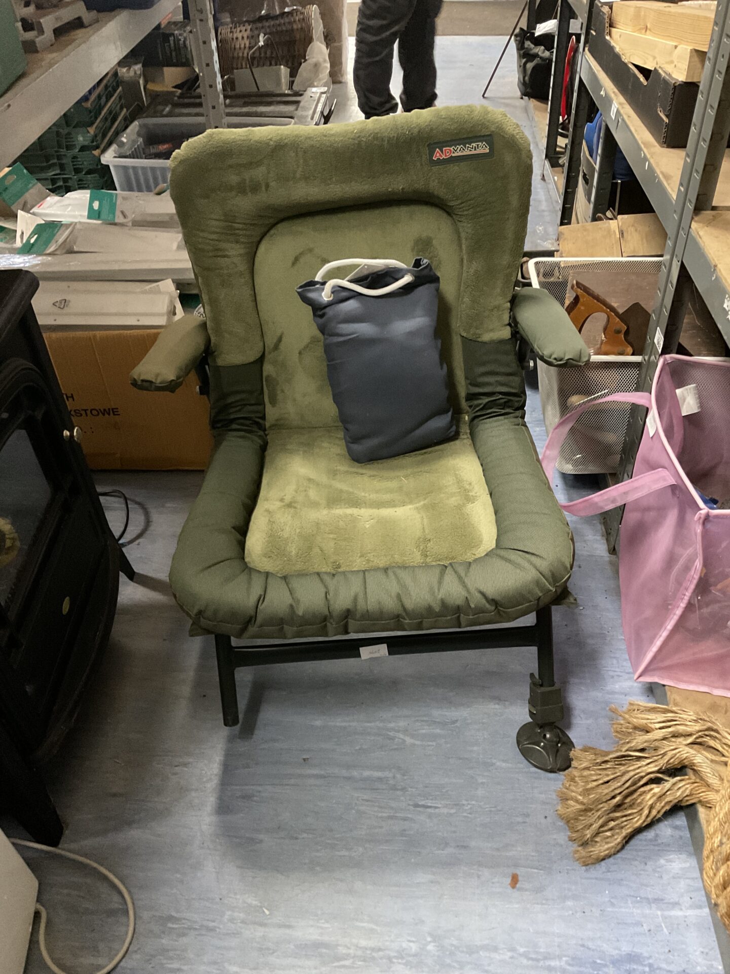 This is an Advanta Endurance Memory Foam Low Chair, designed for comfortable angling sessions. The chair features a low profile and is constructed with memory foam padding for enhanced comfort. It’s designed to be portable and easy to set up, making it ideal for various fishing environments.