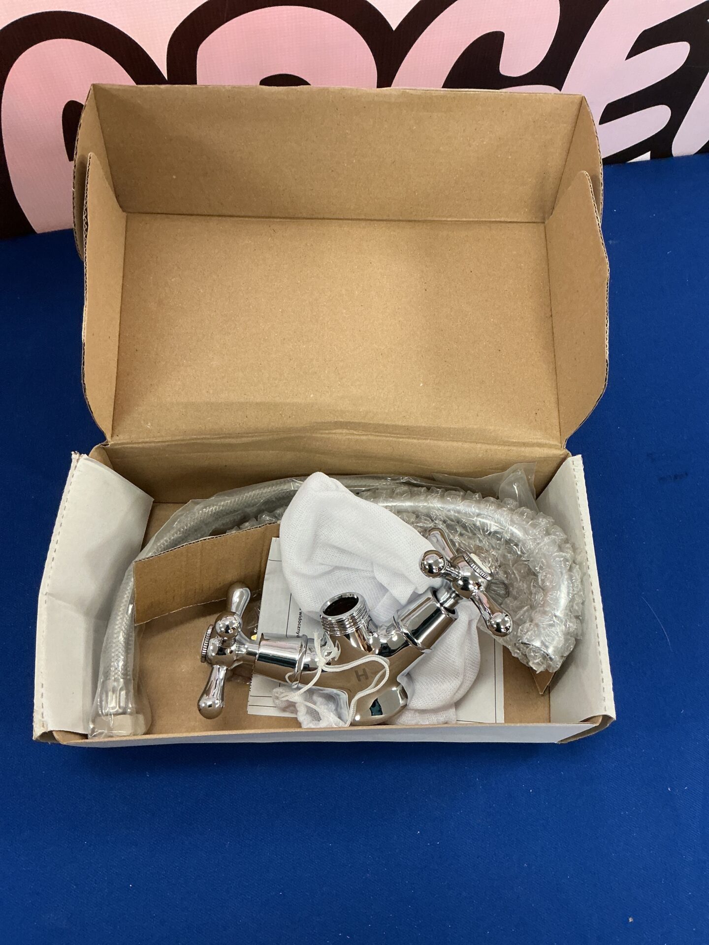 This AES mixer tap set presents a classic design with brass construction and a traditional crosshead handle. Ideal for restoration projects or adding vintage charm, this tap set is presented as-found and its operational status is unknown. A unique addition to any bathroom or sink.
