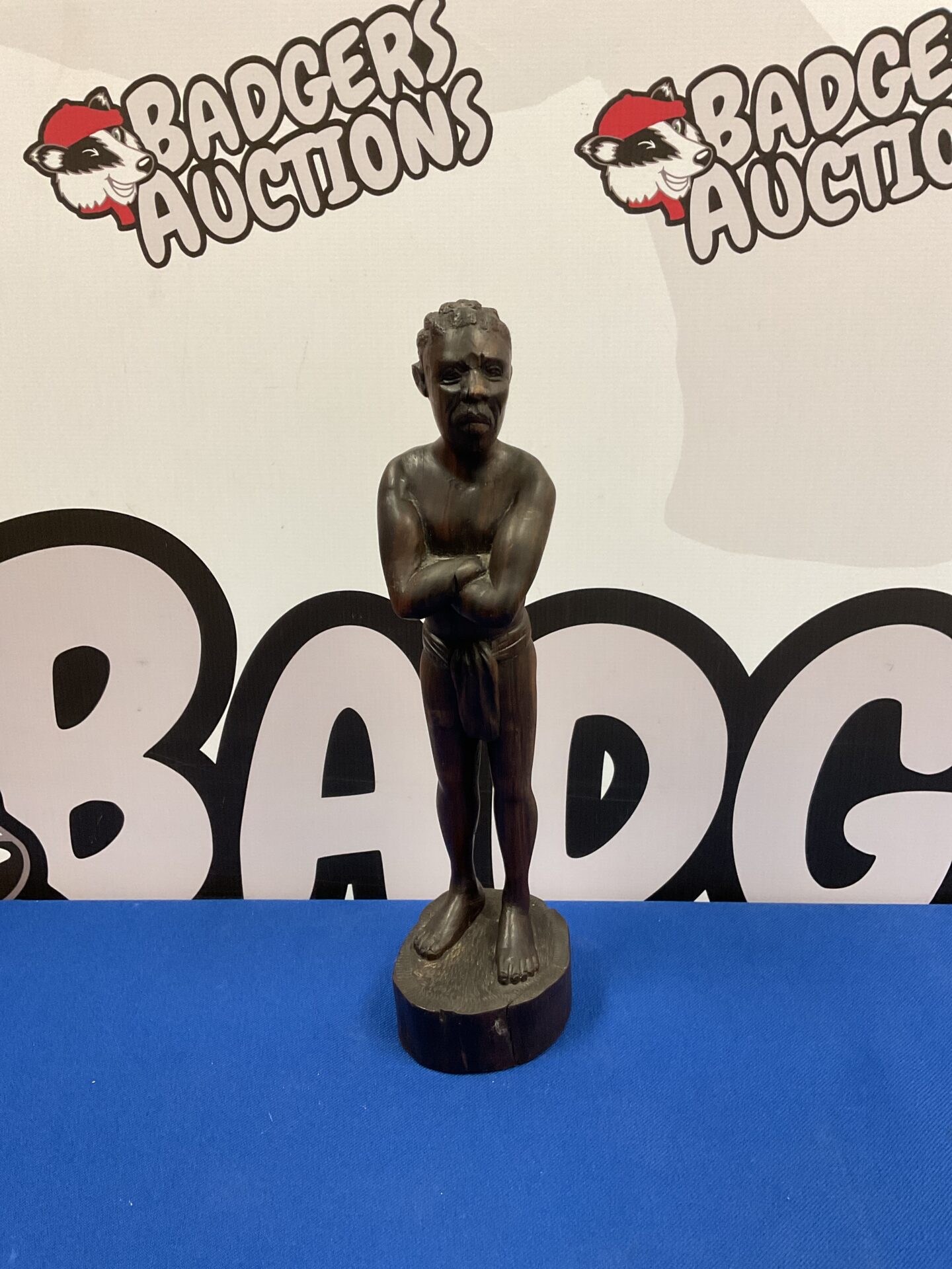 The carving is in good vintage condition, with expected wear consistent with age and handling. There are no significant damages or repairs visible. This piece would be a valuable addition to any collection of African art or tribal artifacts, appealing to collectors and enthusiasts alike. Its unique character and artistic merit make it a desirable and captivating piece.