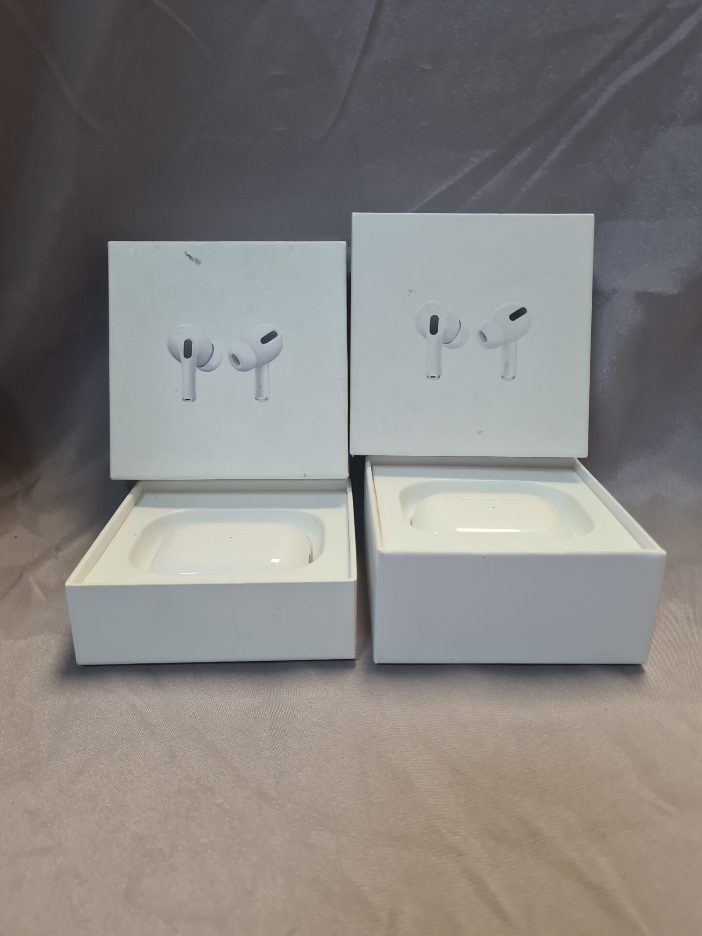 This lot comprises two pairs of Apple Airpod earphones. These wireless earbuds offer a convenient and portable audio experience, utilising Bluetooth technology for seamless connectivity. Designed for comfort and ease of use, these earphones are a popular choice for music lovers and those seeking hands-free communication.