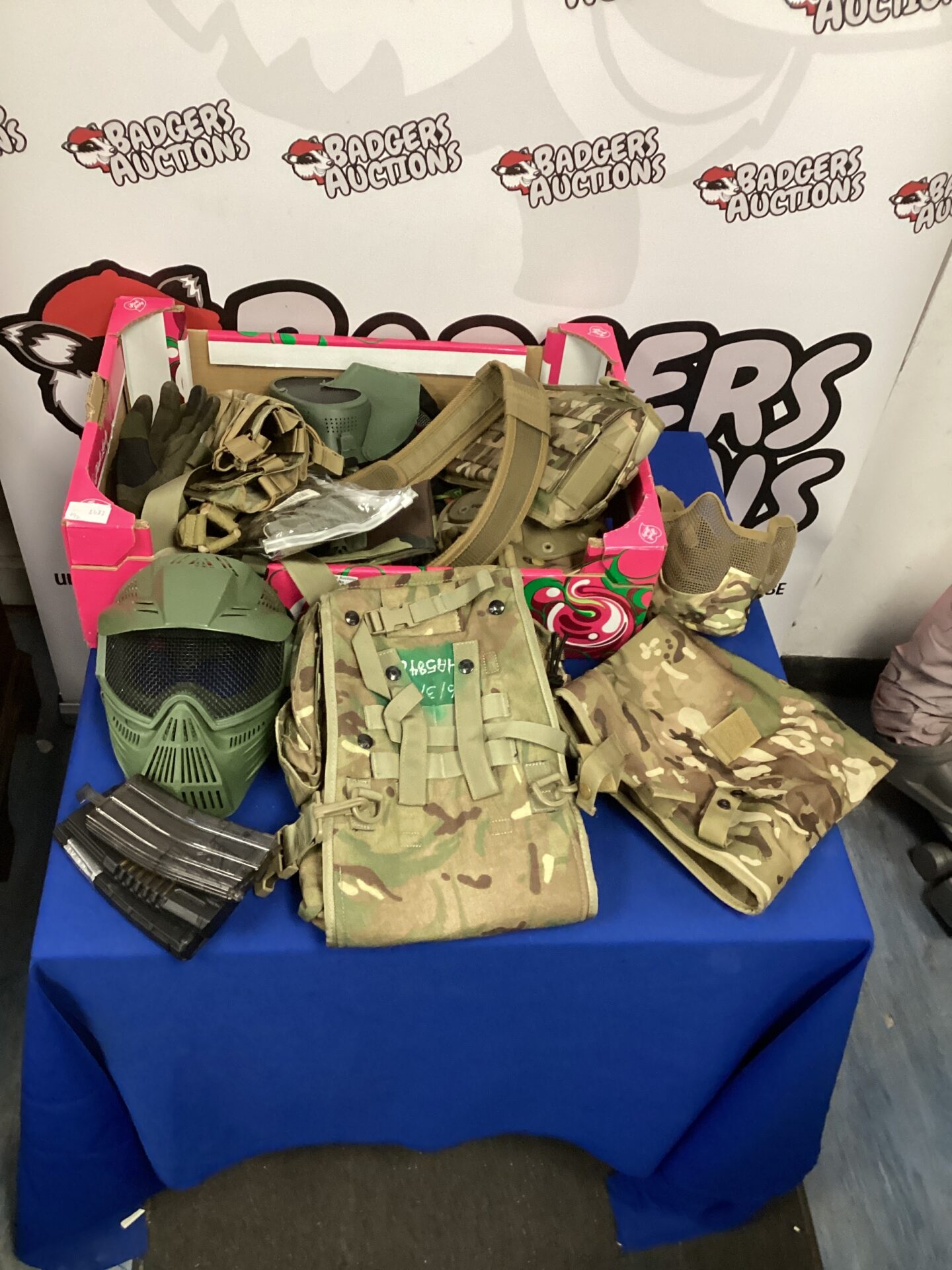 The items appear to be in used condition, showing signs of wear consistent with field use. While not pristine, the padding and accessories remain functional and suitable for continued airsoft play or as part of a larger tactical loadout. This lot presents a cost-effective way to acquire a range of protective gear for enthusiasts or collectors looking to expand their airsoft equipment.