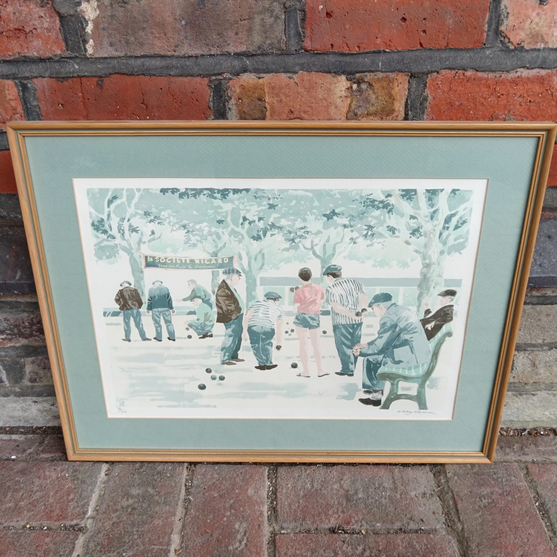 This is a limited edition print by Albany Wiseman, depicting a scene of people playing lawn bowls. The artwork is signed by the artist and captures a charming, nostalgic view of a traditional British pastime. The print showcases Wiseman’s skill in capturing everyday life with a warm and inviting style, making it a delightful addition to any art collection.