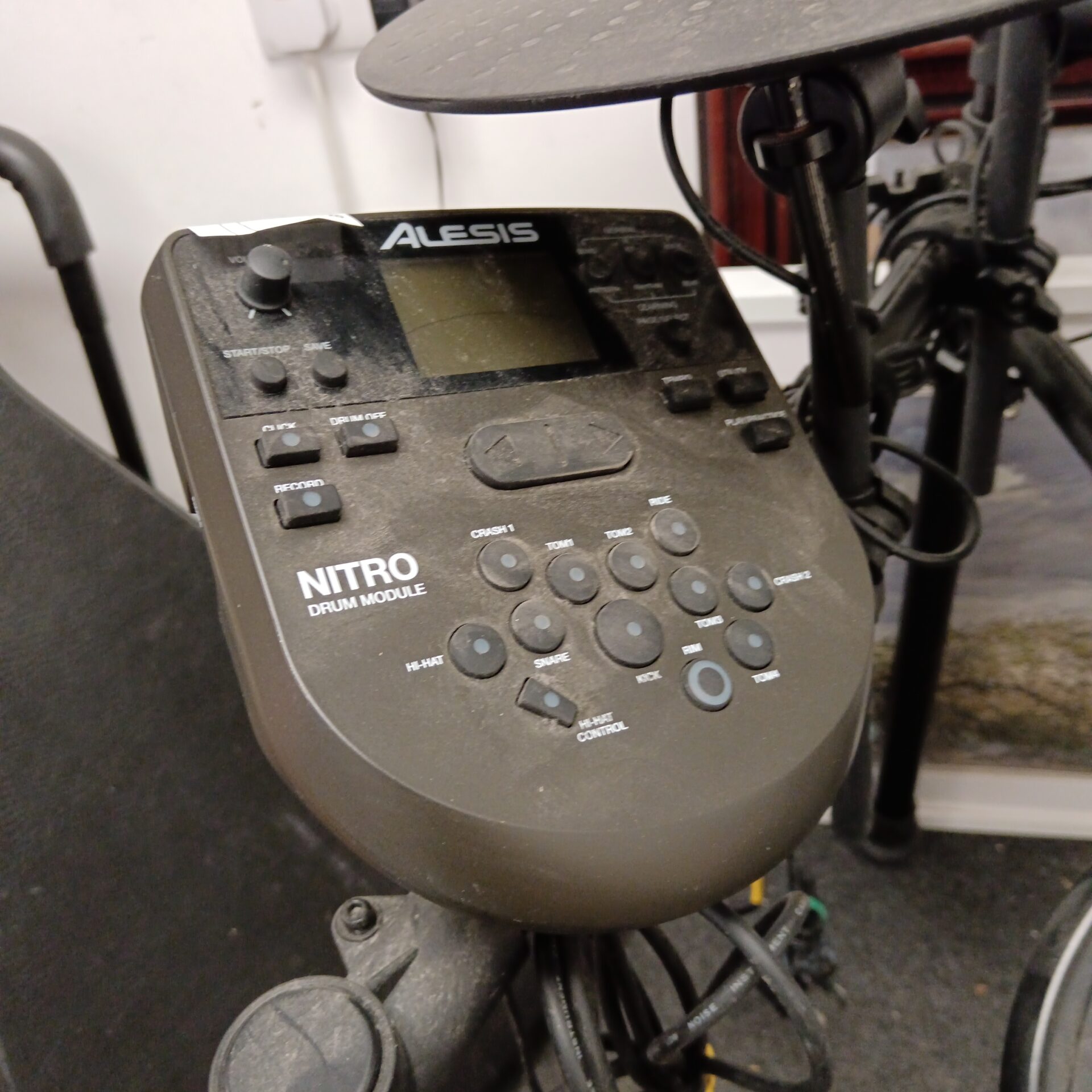This Alesis Nitro electronic drum kit is presented in a used condition. The kit appears to be largely intact, however, it has not been tested and is sold as-is. It may be of interest to musicians seeking an affordable electronic drum kit, or to collectors of vintage musical equipment.