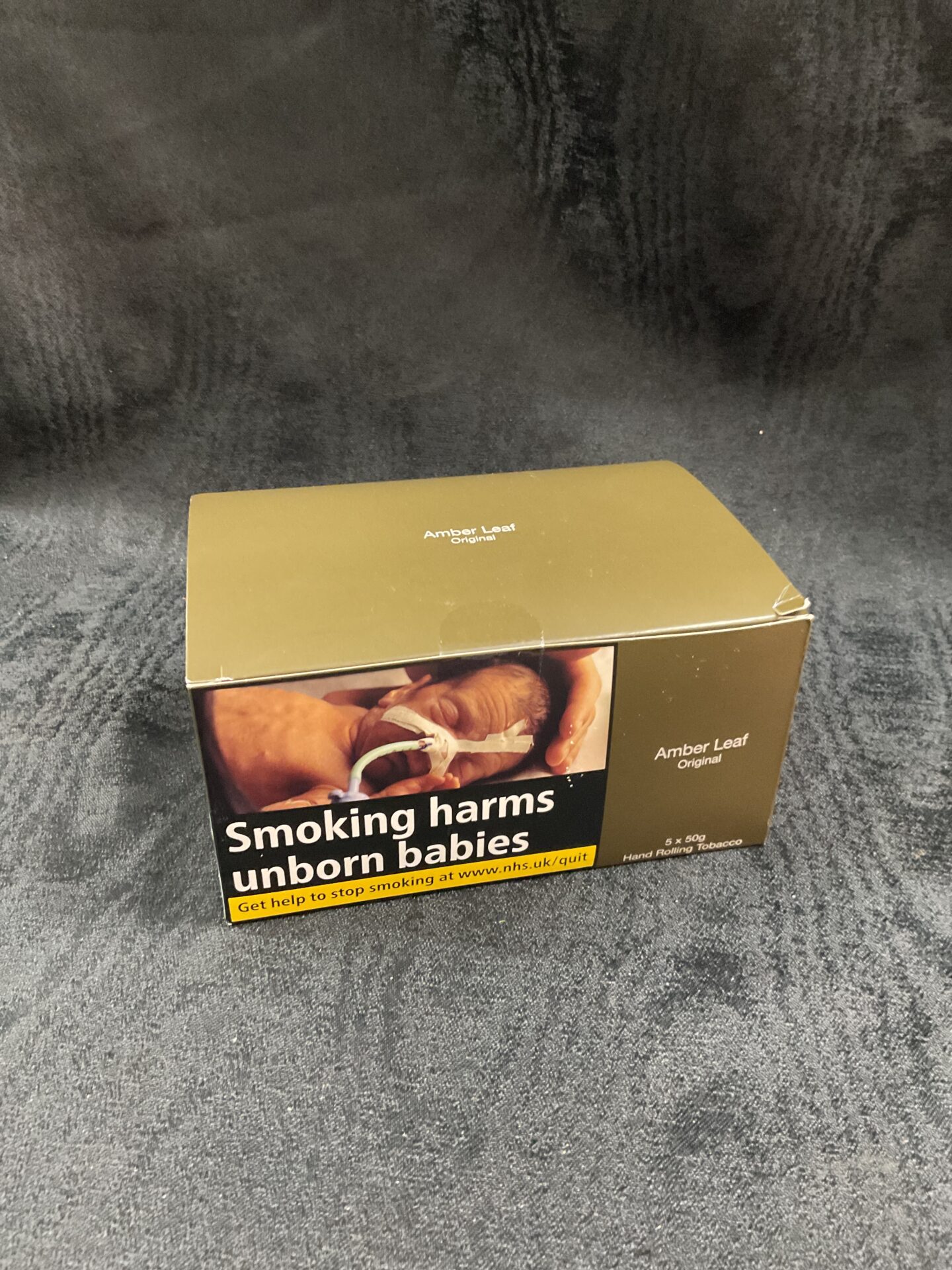 This lot consists of five pouches of Amber Leaf Original hand rolling tobacco, each containing 50g of tobacco. Amber Leaf is a popular brand known for its smooth flavour and affordability, making it a favourite among hand-rolling enthusiasts. These pouches are ideal for those who prefer a consistent and reliable tobacco for their cigarettes.