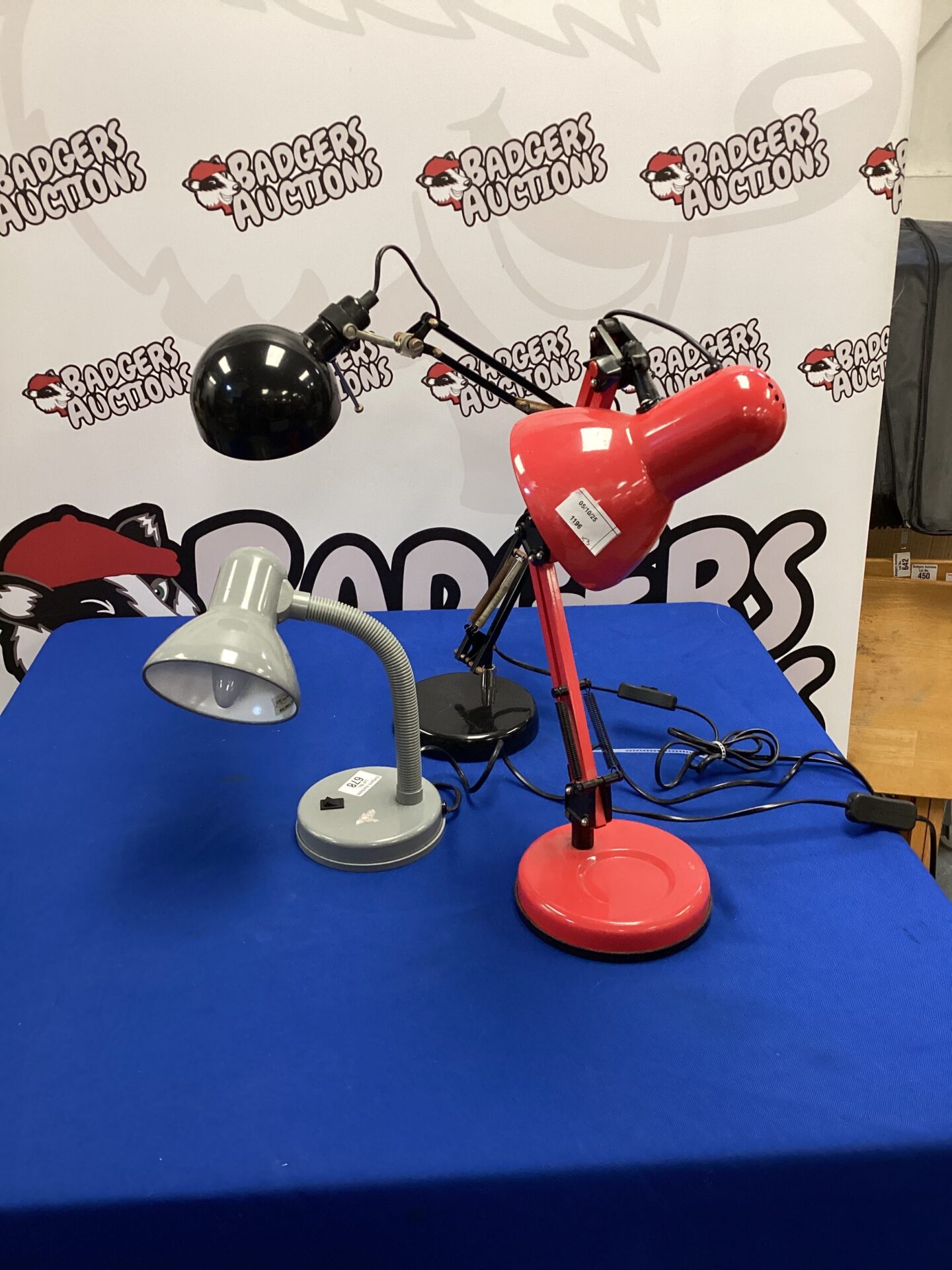 This is a classic Anglepoise style desk lamp, featuring a fully adjustable arm and head for directing light exactly where it’s needed. The lamp has a weighted base for stability and a timeless industrial aesthetic. This particular example showcases a vibrant red finish, adding a pop of colour to any workspace or home decor.