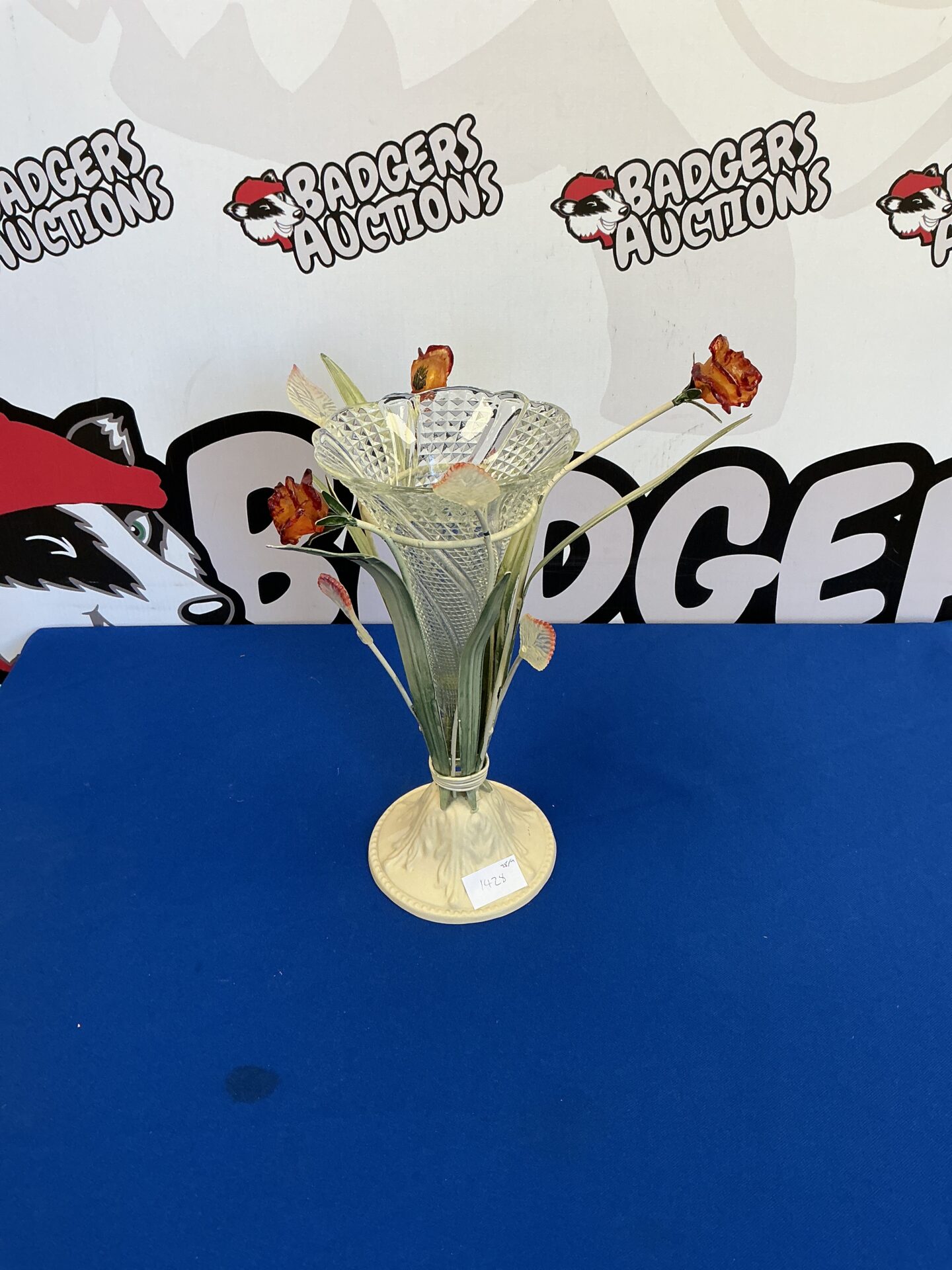The vase is in good antique condition, with minor wear consistent with age and use. There are no significant chips or cracks, although some light surface scratches are present. This piece would be a wonderful addition to a collection of antique glass or floral presentation items, appealing to collectors and enthusiasts alike.