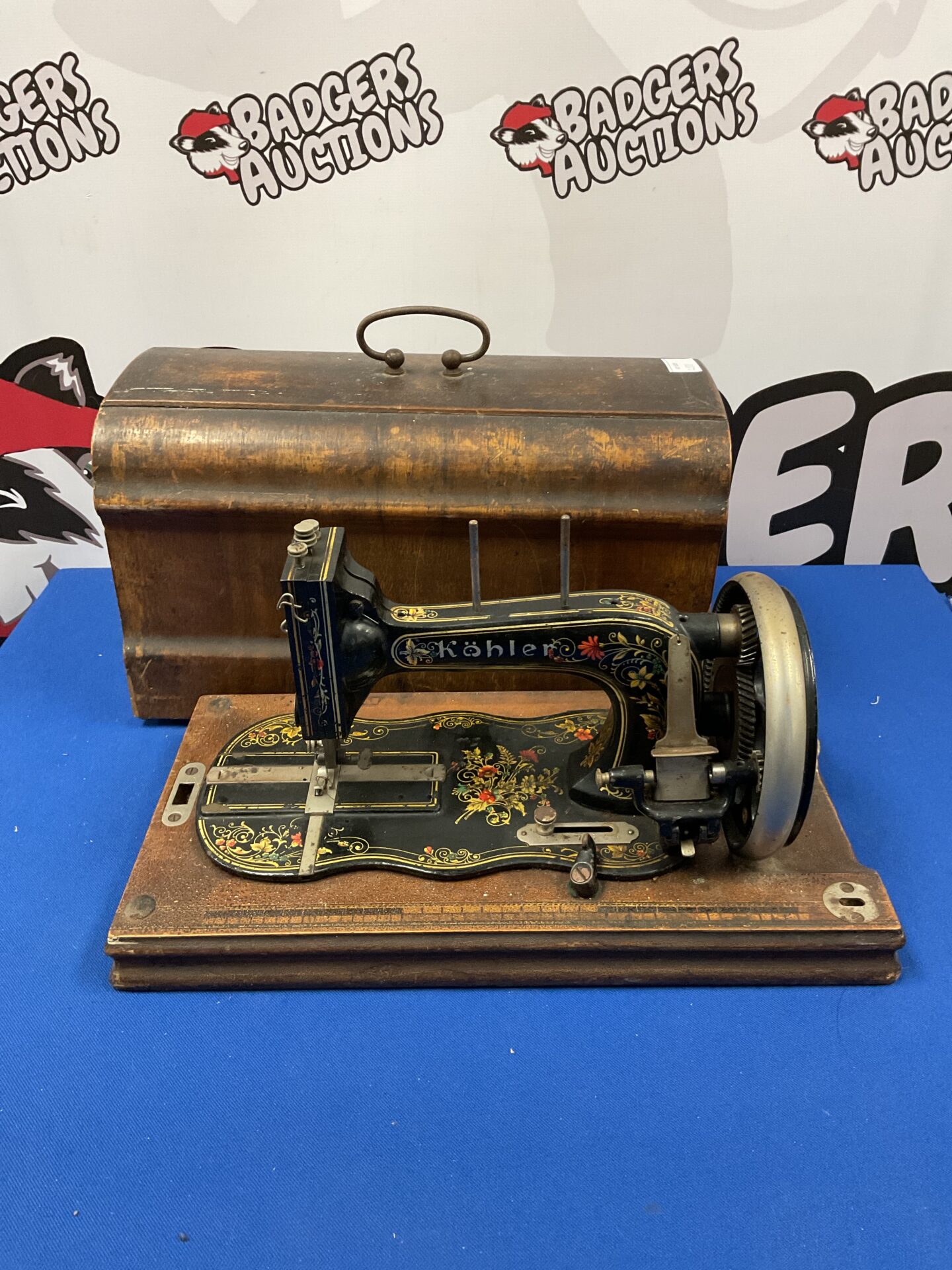 This sewing machine presents as a display piece, with signs consistent with age and use. The machine may require restoration or cleaning to return it to full working order. It would be a wonderful addition to a collection of antique sewing machines, or a unique decorative item for a vintage-inspired home.