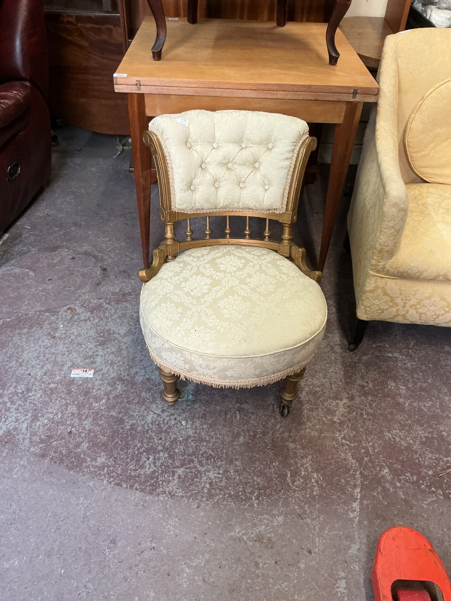 This charming chair is an antique nursery chair, likely dating from the Victorian era. It features a delicately carved wooden frame with a cream-coloured upholstered seat and back. The chair’s petite size and decorative detailing suggest it was designed for a young child, adding a touch of elegance to a nursery or playroom. The chair’s construction and style are indicative of fine craftsmanship and attention to detail, typical of furniture from this period.