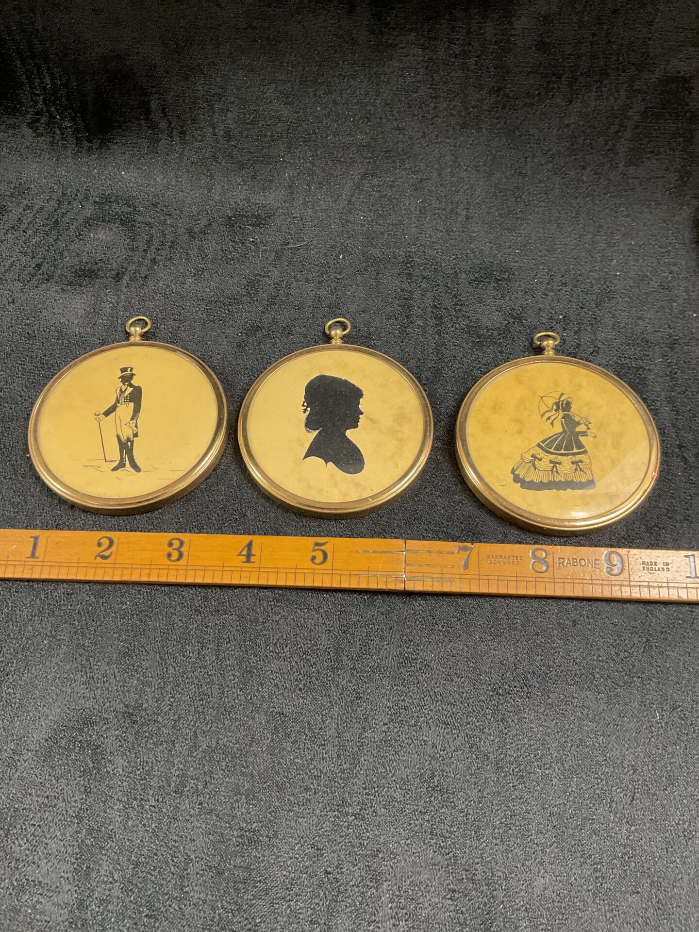 This charming lot comprises three antique silhouette portraits, each presented within an oval frame. These delicate works of art likely date to the 19th century, a period when silhouette portraiture was a popular and affordable way to capture a likeness. The profiles are finely cut, showcasing the skill of the artist, and offer a glimpse into the fashion and style of the era.