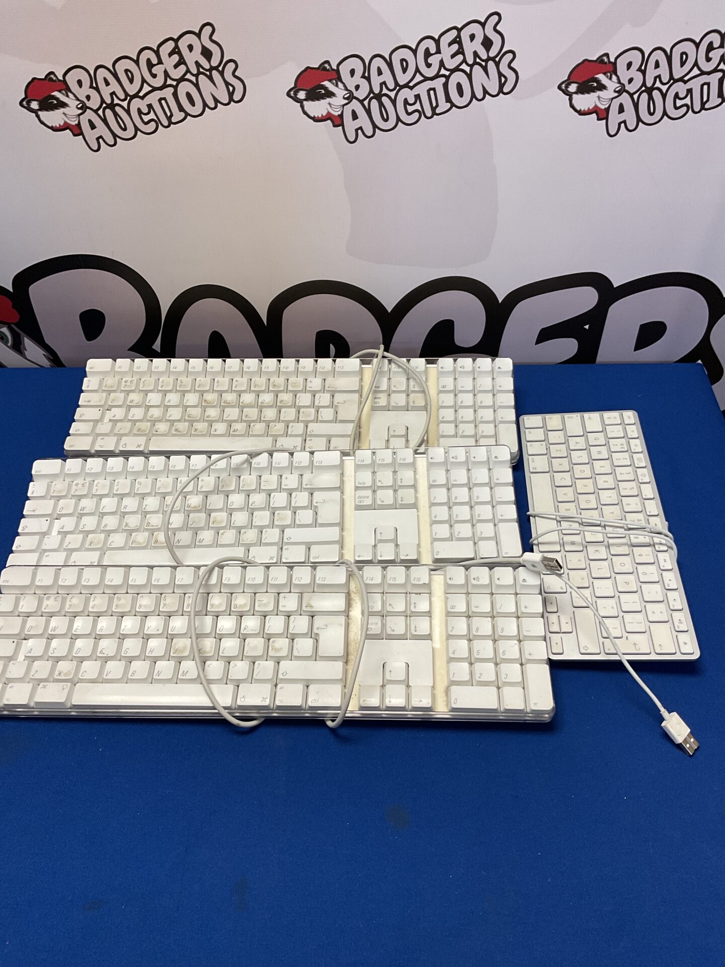 This lot comprises four Apple Mac keyboards, designed for use with Apple Macintosh computers. These keyboards feature the standard QWERTY layout, providing a familiar and efficient typing experience. The keyboards connect via USB, offering compatibility with a wide range of Apple devices.