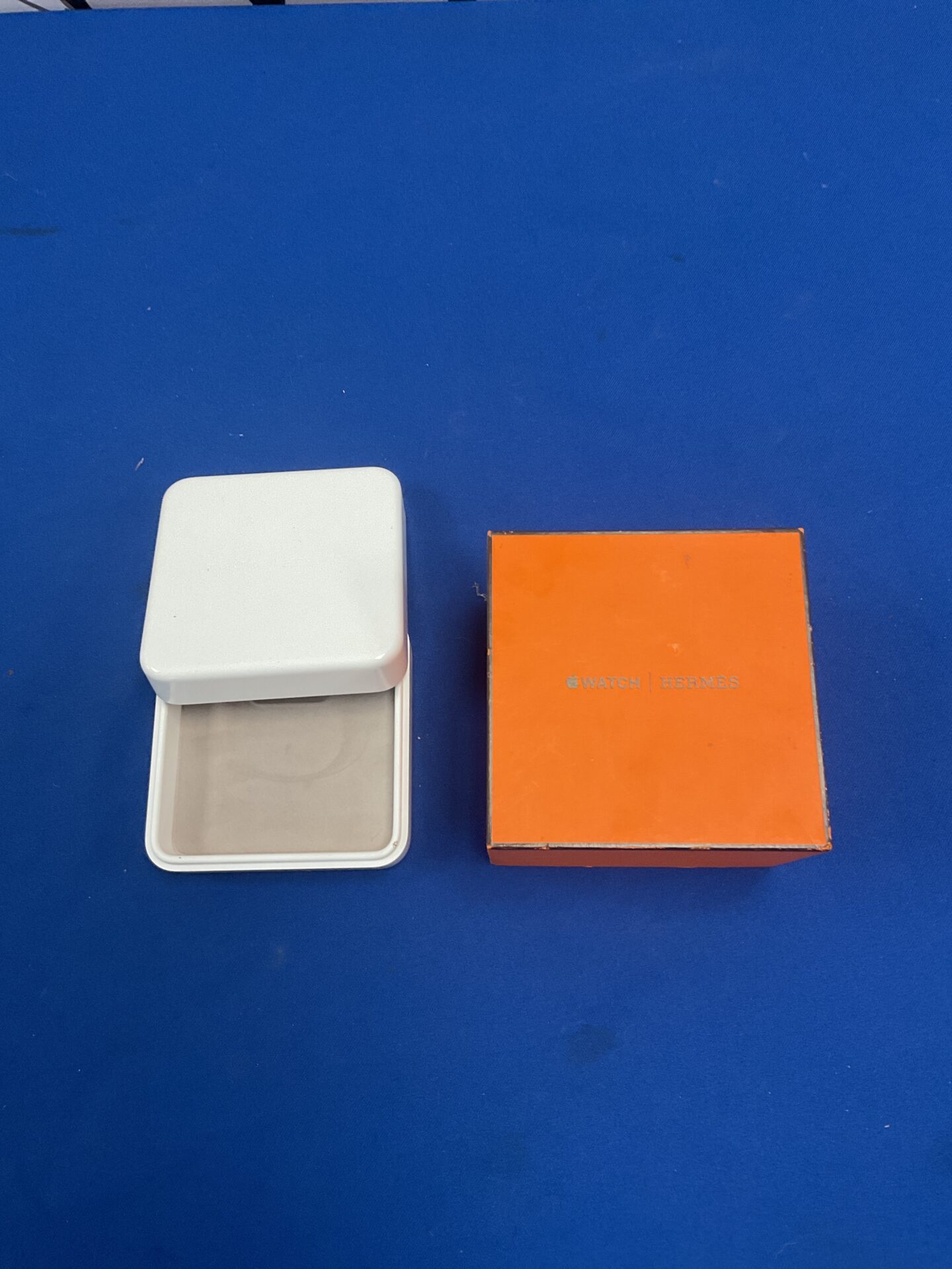 This box is in excellent condition, showing minimal signs of wear. While empty, it remains a desirable item for collectors of Apple or Hermes memorabilia, or for those looking to present a replacement watch or accessory in premium packaging. It’s a great way to complete a collection or elevate the unboxing experience.