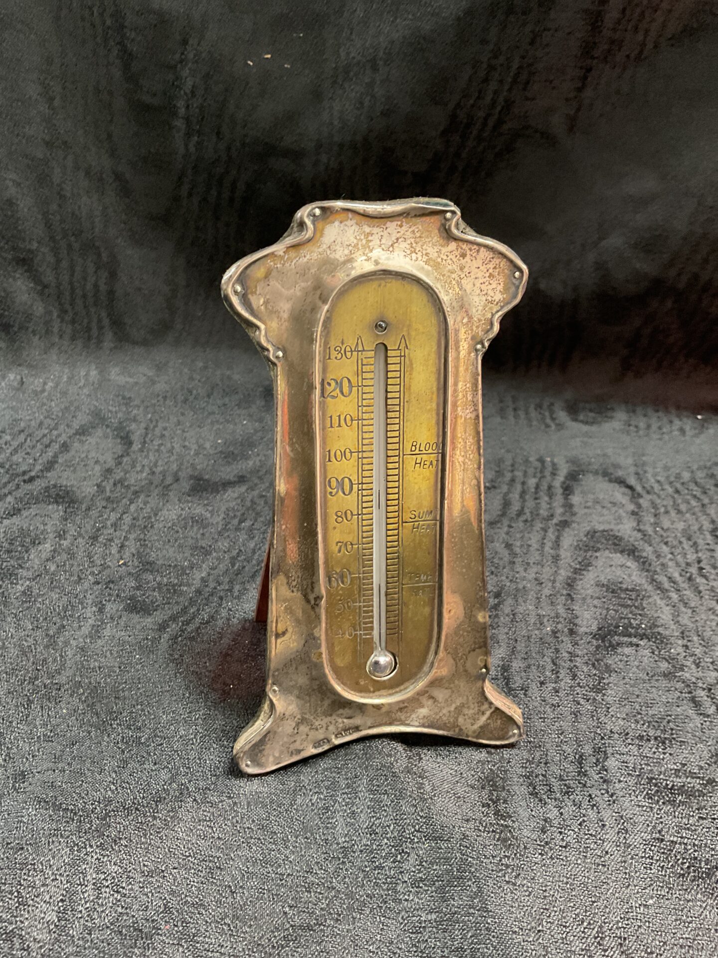 880 Hallmarked Sterling Silver 1904 Art Nouveau Framed Mercury Thermometer