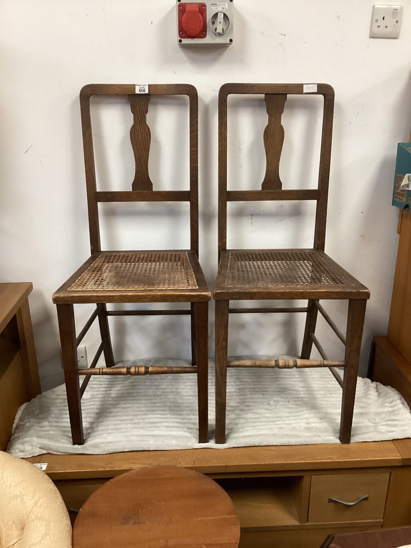 These chairs present well, with a pleasing patina developed over time, indicative of their age and use. While some minor wear and tear is present, consistent with their age, they remain structurally sound and display a charming character. They would be a welcome addition to any collection of Arts and Crafts furniture, or a unique statement piece for those seeking a touch of vintage elegance in their home. Their enduring style and quality ensure they will be cherished for years to come.