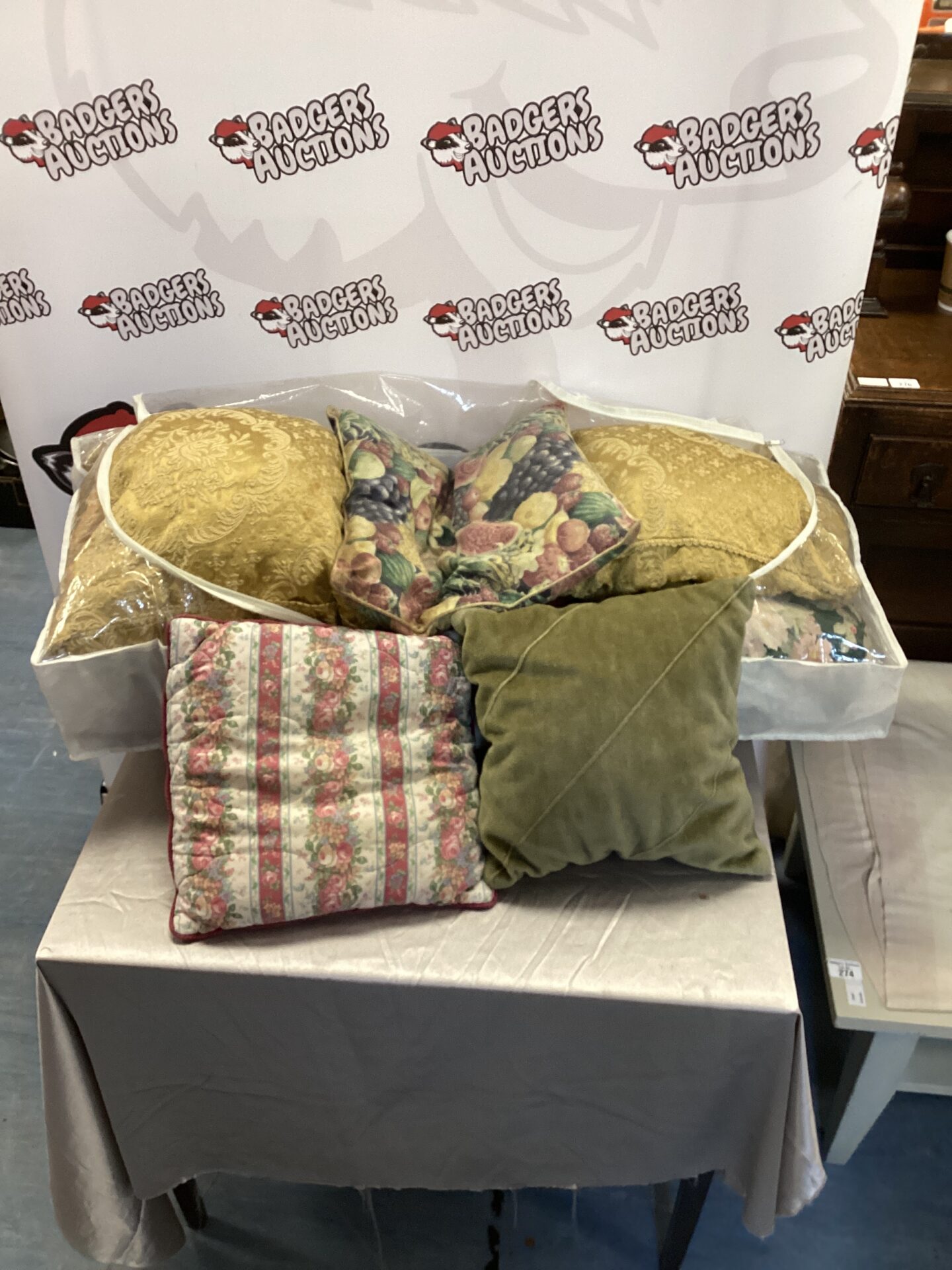 This lot comprises a collection of assorted cushions, offering a variety of patterns and textures. The cushions appear to be constructed from a mix of materials, likely including cotton and polyester blends, and feature diverse designs ranging from floral motifs to geometric patterns. These cushions are intended to add comfort and style to any living space, offering a versatile option for enhancing home decor.