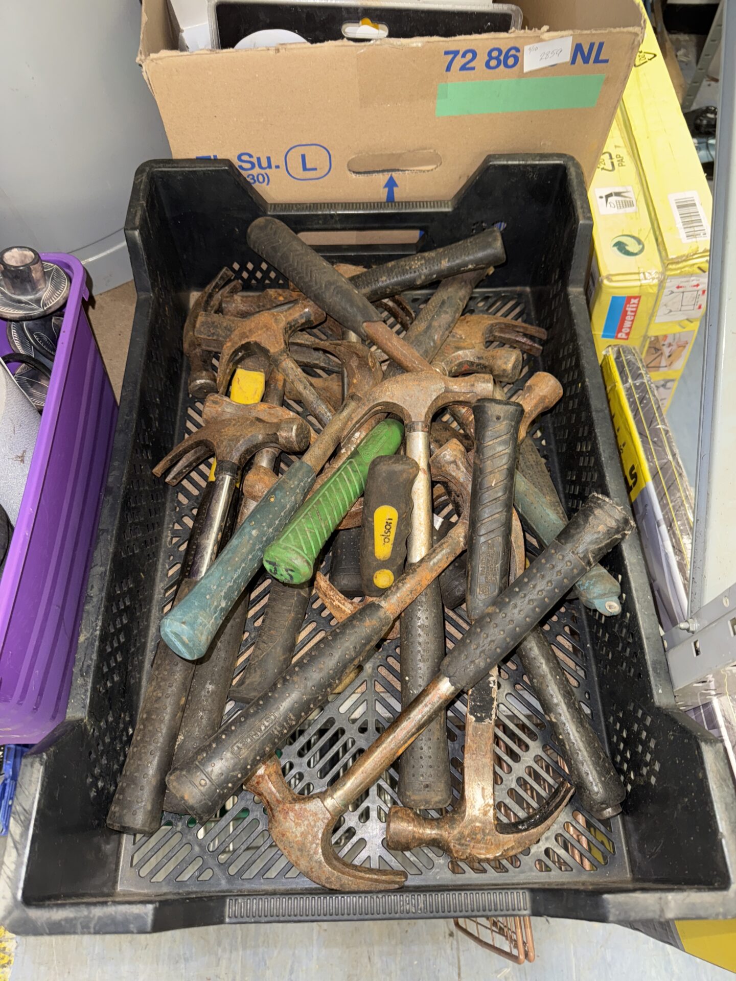 This lot comprises a quantity of assorted hammers, varying in size and style. The hammers feature a mix of wooden and rubber grips, and different head weights, suggesting they were used for a variety of tasks. This collection would be ideal for a DIY enthusiast, tradesperson, or collector of vintage tools.