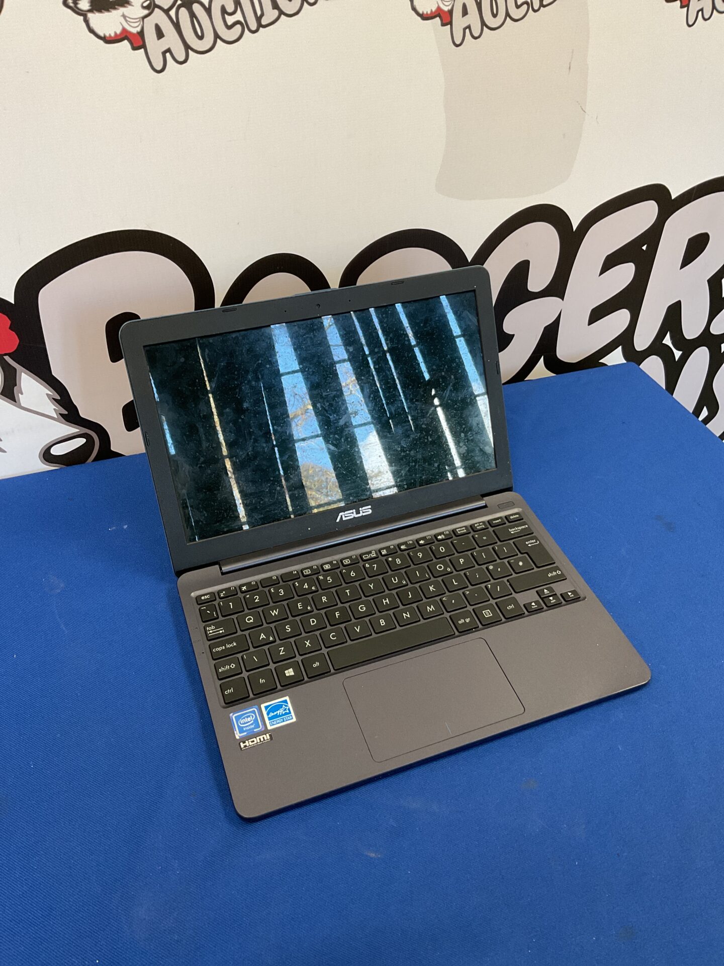 The condition of this Asus E203M notebook is as visible in the provided images. It may be of interest to collectors of vintage or early portable computers, or those seeking a project device. Please examine the images carefully to assess its present state.