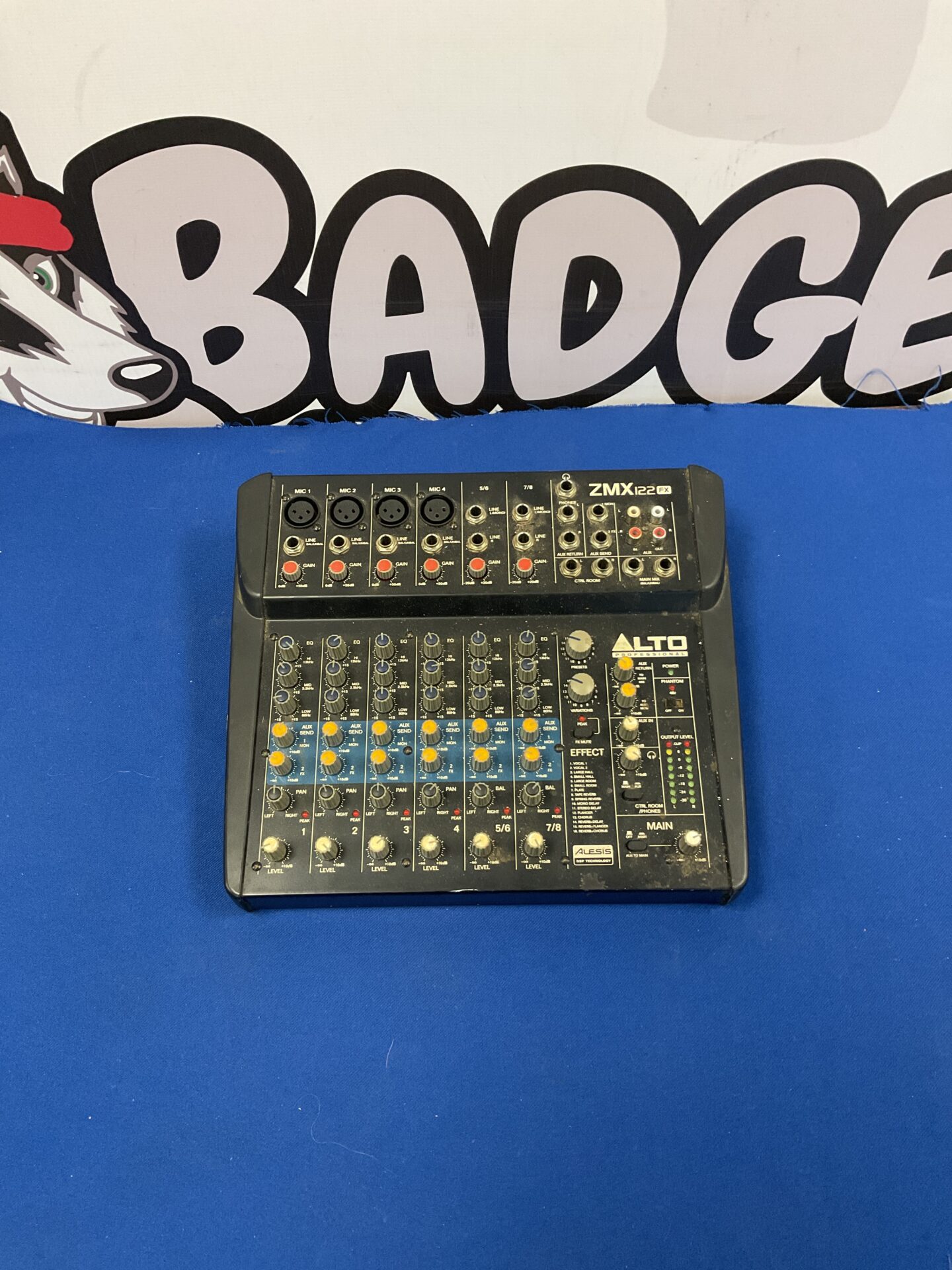 This is an Alto Professional ZMX 122FX audio mixer, designed for versatile sound control. Featuring multiple input channels, EQ controls, and built-in effects, this mixer is suitable for a range of audio applications, from live sound reinforcement to recording and home studio use. The ZMX 122FX offers a compact and user-friendly design, making it accessible for both beginners and experienced audio engineers.