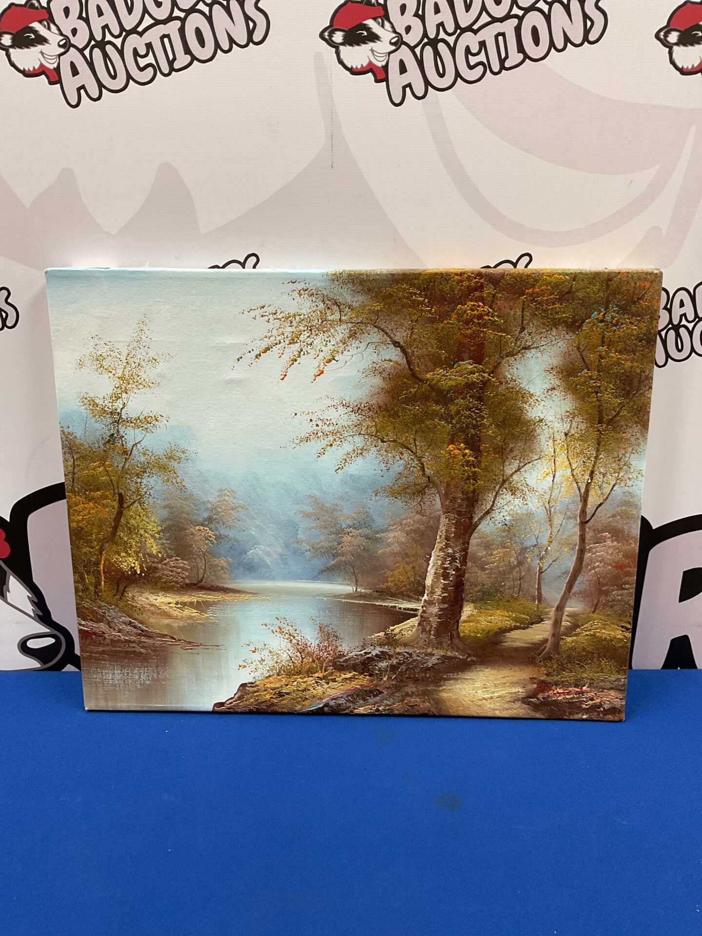 The painting appears to be in good vintage condition, with expected wear consistent with its age. This piece would be a wonderful addition to a collection of landscape paintings or vintage art, and is sure to bring a touch of autumnal beauty to any home. The signature adds to its appeal and potential value for collectors.