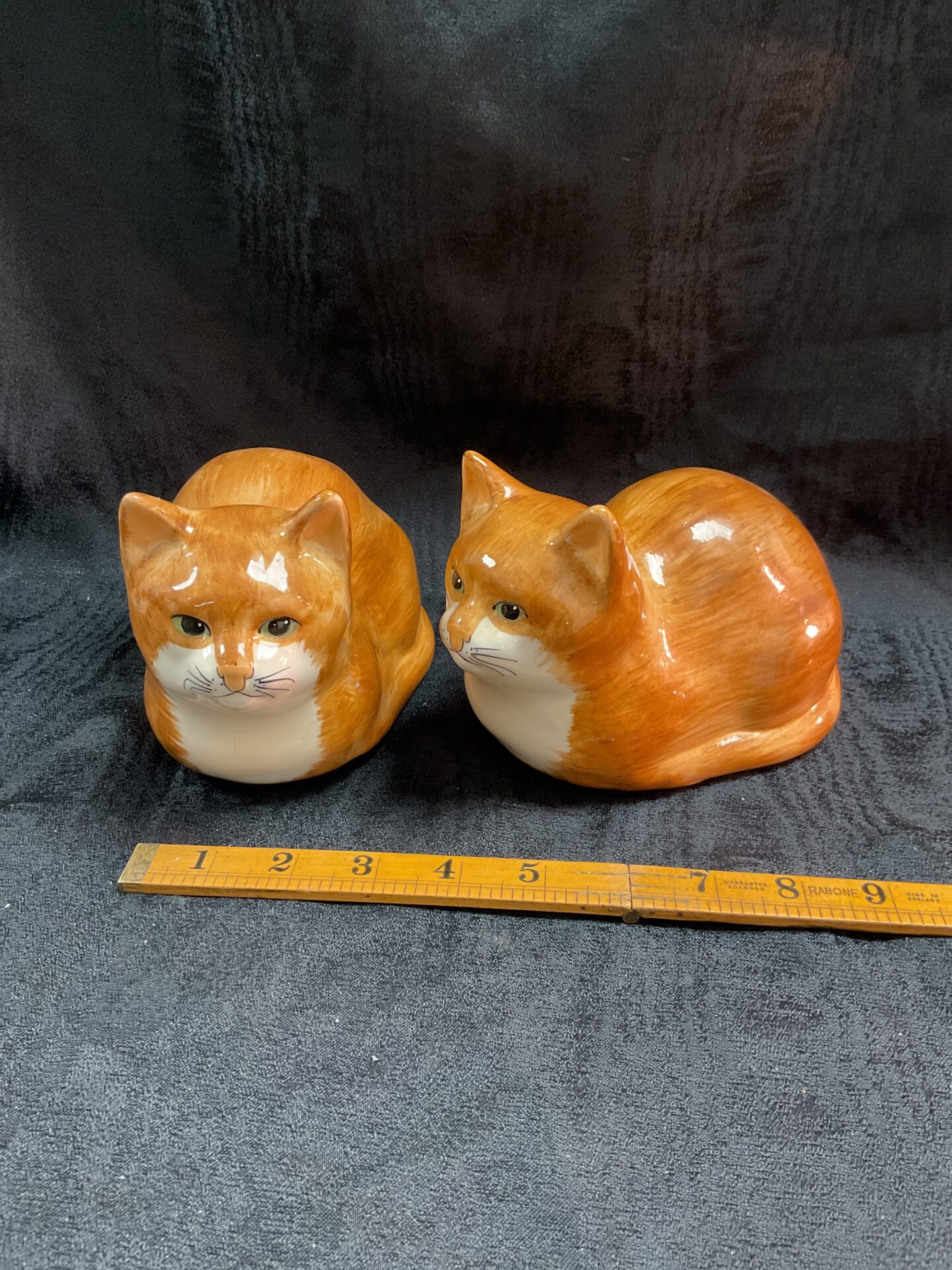 These cats show signs of age and wear consistent with vintage items, adding to their character. They appear to be original pieces, and would be a welcome addition to a collection of Devon pottery or vintage animal figurines. Their appealing design and collectible nature make them desirable for enthusiasts and collectors alike.
