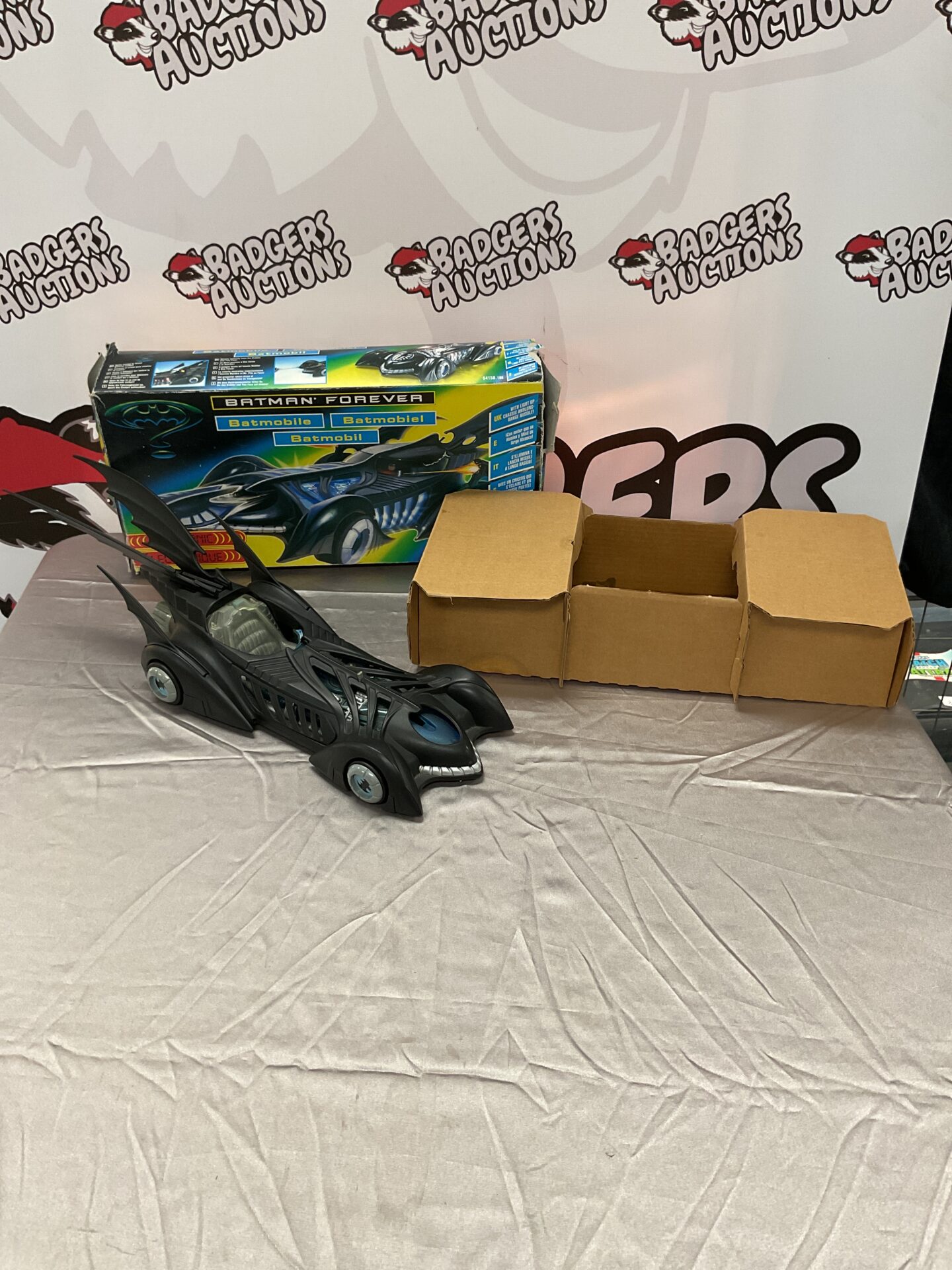 This is a fantastic boxed Kenner Batman Forever Batmobile from 1995. This iconic vehicle is a must-have for any Batman enthusiast or collector. The Batmobile features sleek lines and a futuristic design, capturing the essence of the film’s aesthetic. It’s a detailed replica of the vehicle featured in the popular movie, offering a nostalgic trip back to the 90s.