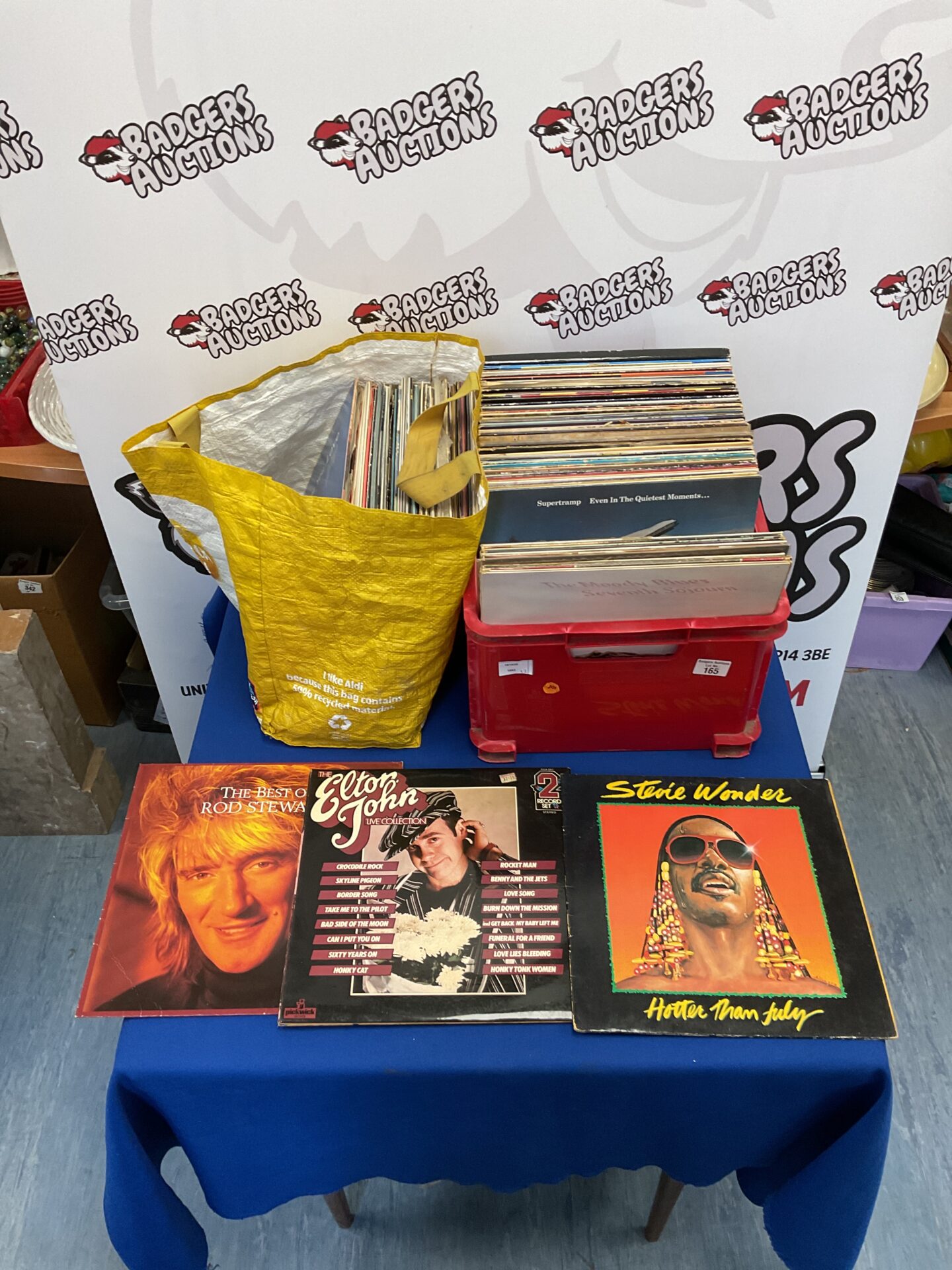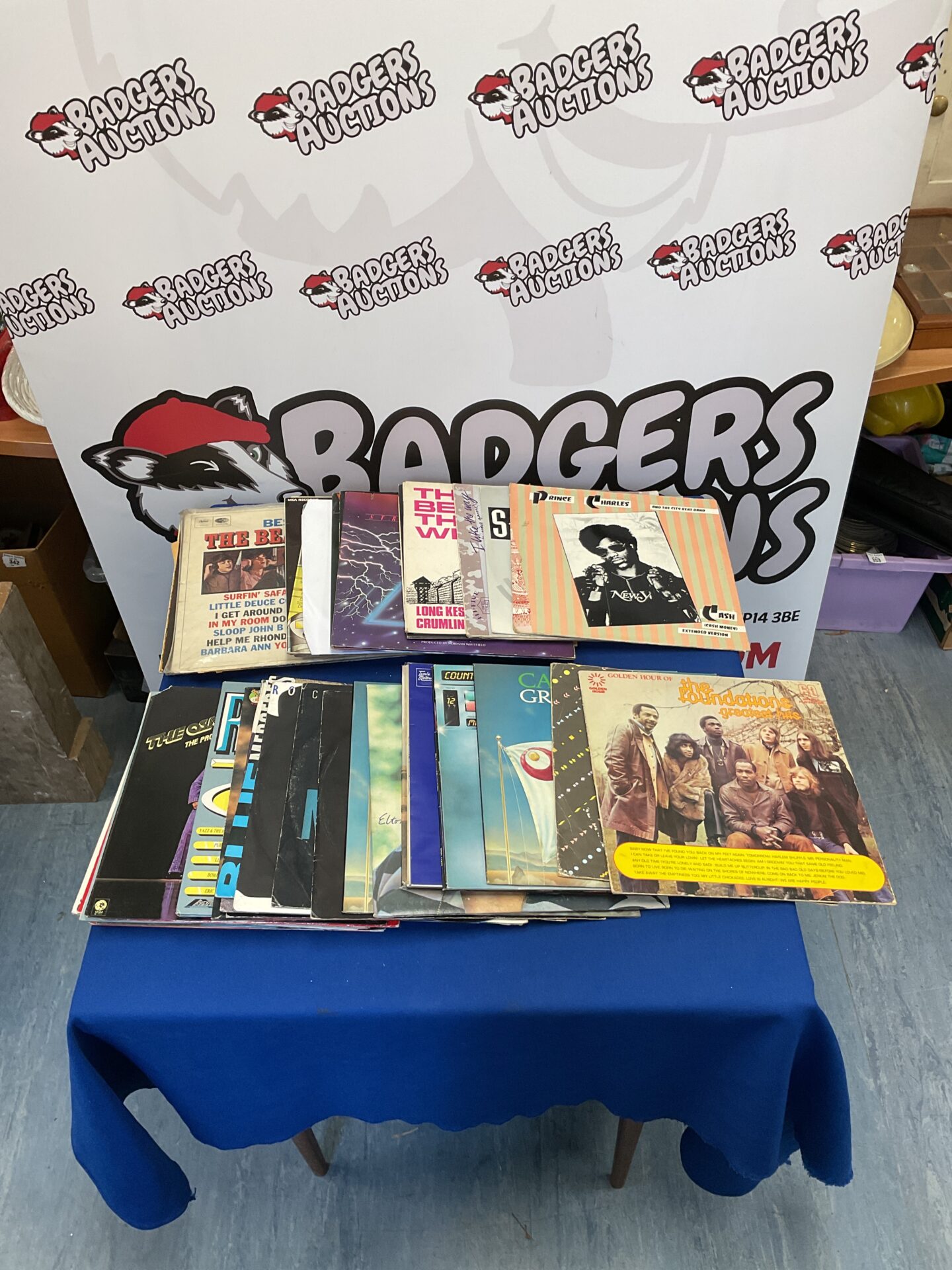 This lot features a selection of vinyl records, prominently including music by The Beach Boys. These records represent a slice of 1960s surf rock and pop culture, capturing the iconic California sound that defined a generation. The collection offers a nostalgic trip for music enthusiasts and collectors alike, showcasing the band’s signature harmonies and upbeat melodies.