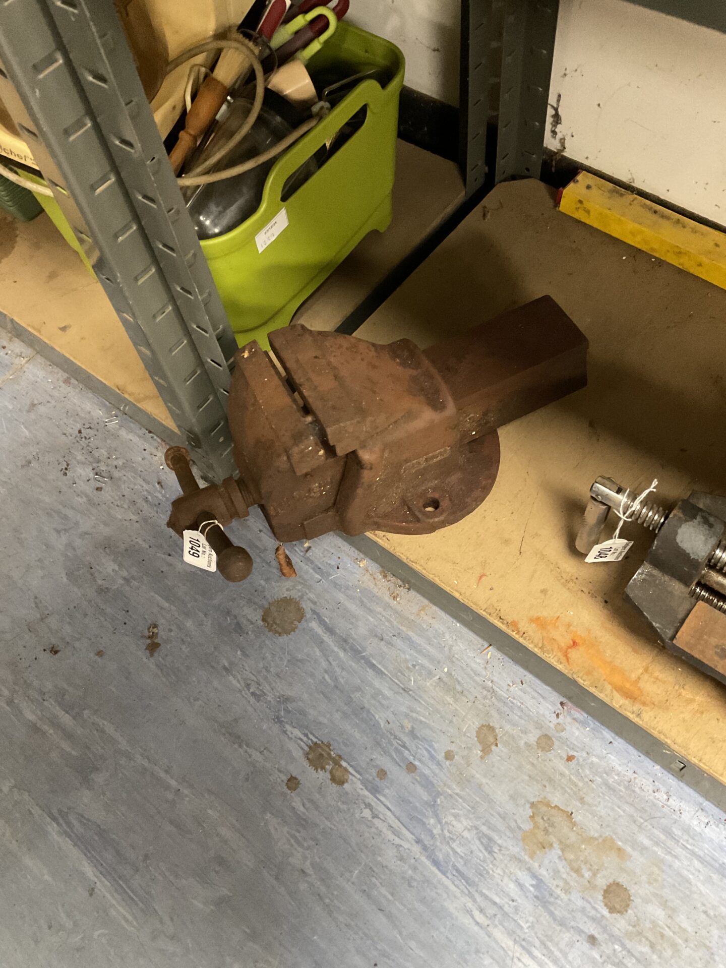 This bench vice shows signs of age and use, with surface corrosion and wear consistent with a tool of its type and vintage. While it may require cleaning or restoration, it retains its original functionality and character. This vice would be of interest to tool collectors, vintage enthusiasts, or anyone seeking a reliable and classic workshop tool for their projects.