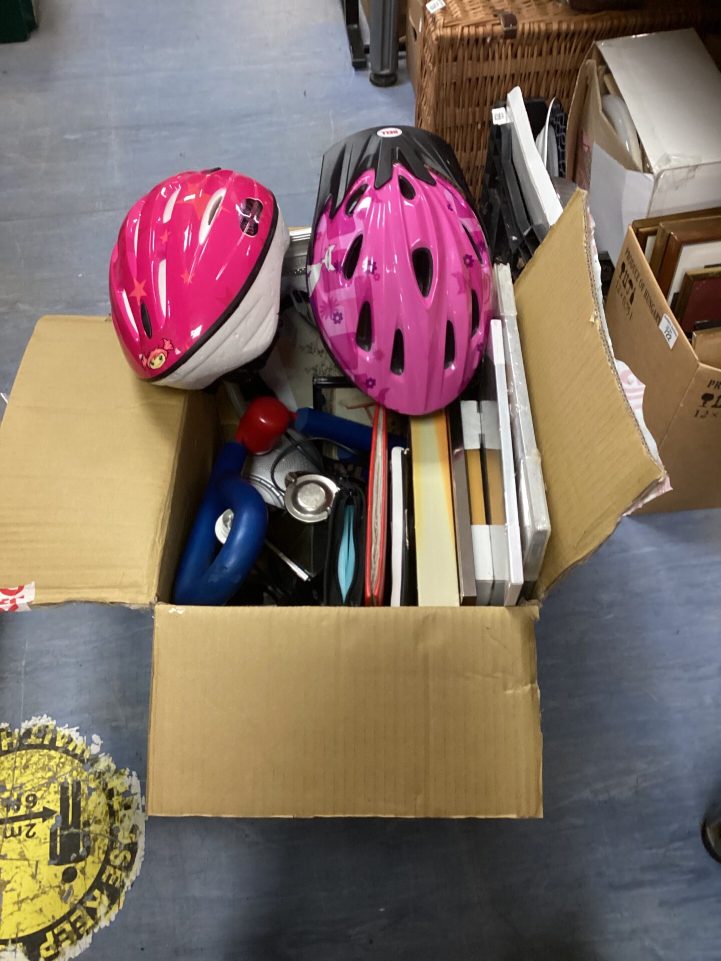 This lot contains a collection of bike helmets in various sizes and colours, including pink and blue options. These helmets are designed to provide essential head protection for cyclists of different ages and skill levels. The helmets appear to be constructed with durable materials and feature adjustable straps for a secure and comfortable fit.
