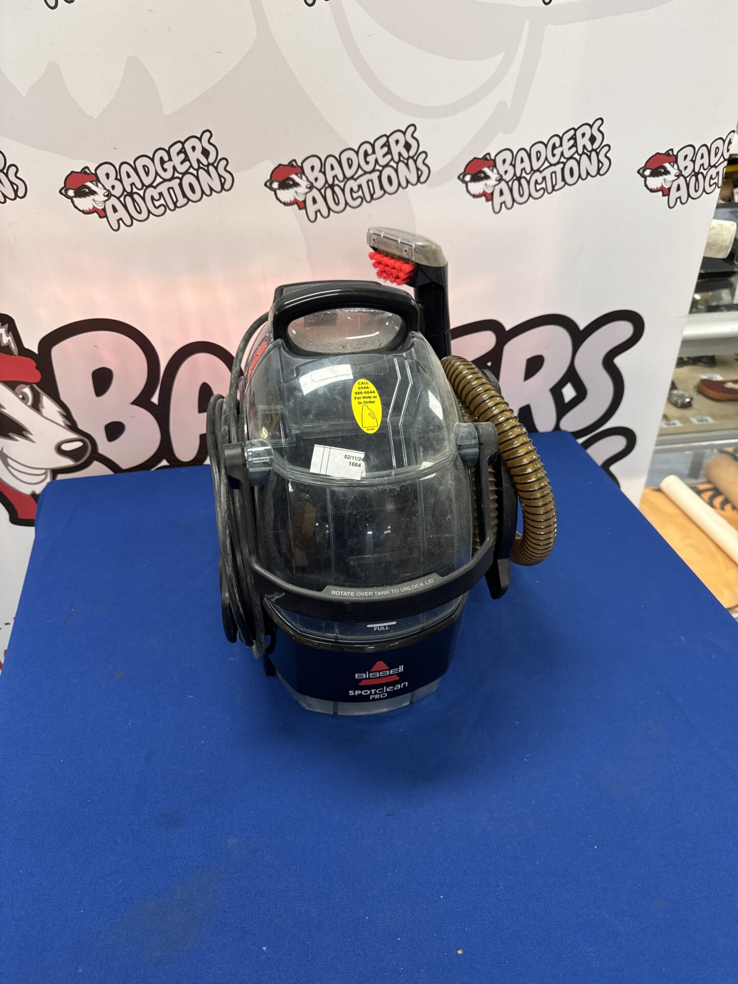 This Bissell Spotclean Pro is offered for sale as viewed, with no guarantees to its operational status. It may be of interest to collectors of vintage home appliances or those seeking parts for repair. Please examine the images carefully to assess its condition before purchasing.