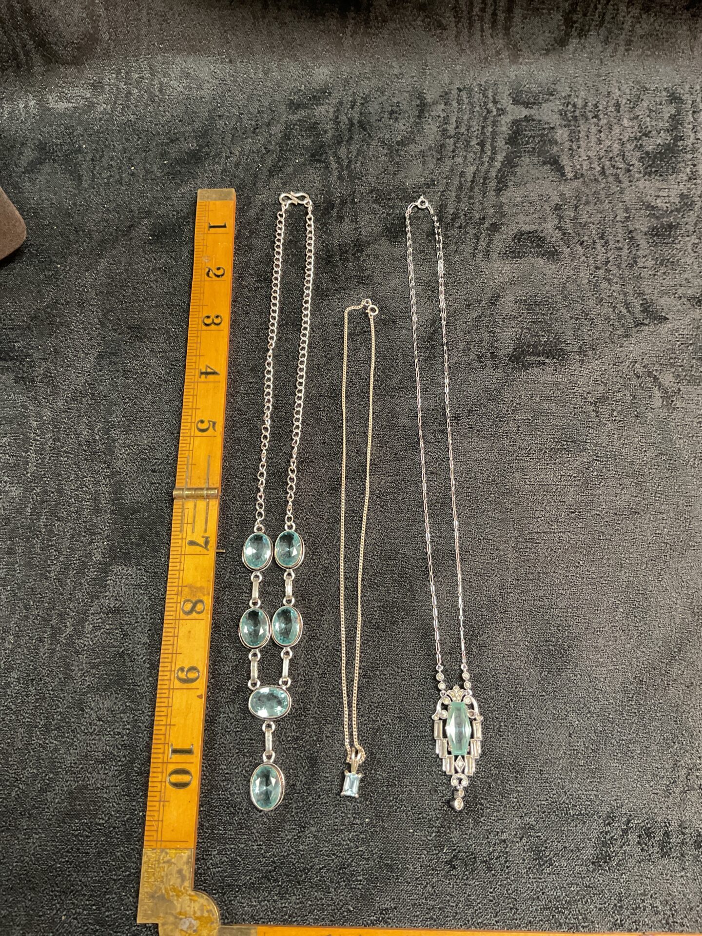 These necklaces appear to be in excellent condition, ready to be worn or added to a jewellery collection. The quality of the silver and the vibrant blue topaz make these pieces desirable for collectors and enthusiasts alike. Their classic designs ensure they remain stylish and wearable for years to come, offering both beauty and value.