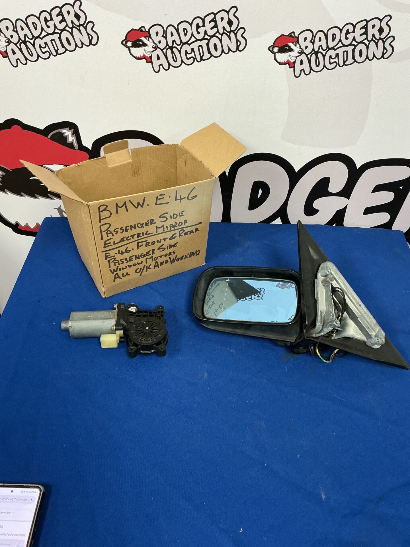 Genuine BMW E46 passenger side electric mirror in used condition. This mirror offers electric adjustment for convenient visibility and is a direct replacement part for your vehicle. Ideal for E46 enthusiasts or those needing a cost-effective repair solution.