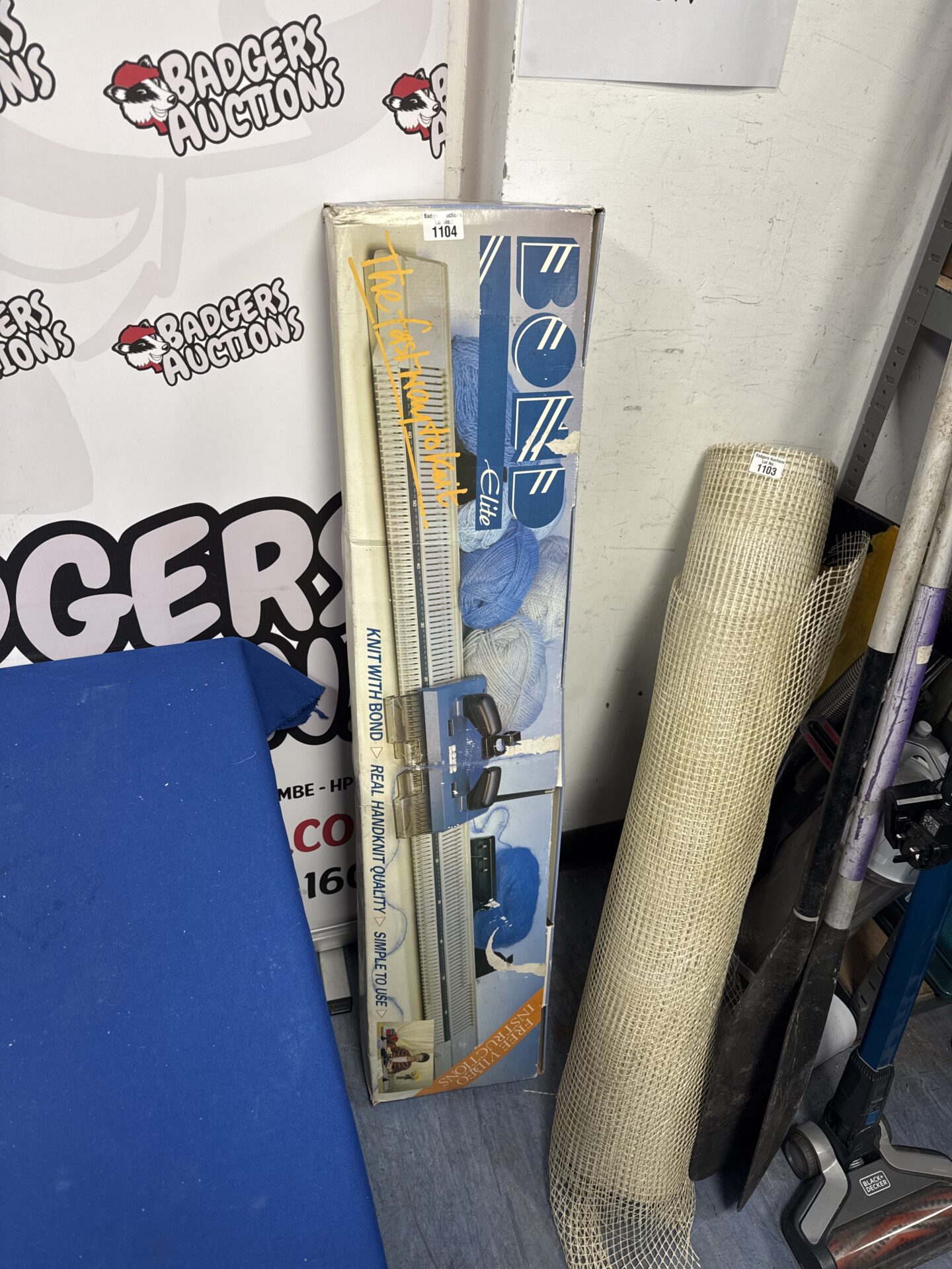 This Bond Elite knitting machine is offered as viewed, with no guarantees to its operational status. It appears to be a complete unit, but has not been tested. It may be of interest to collectors of vintage craft equipment, or those looking for a project to restore a classic knitting machine.