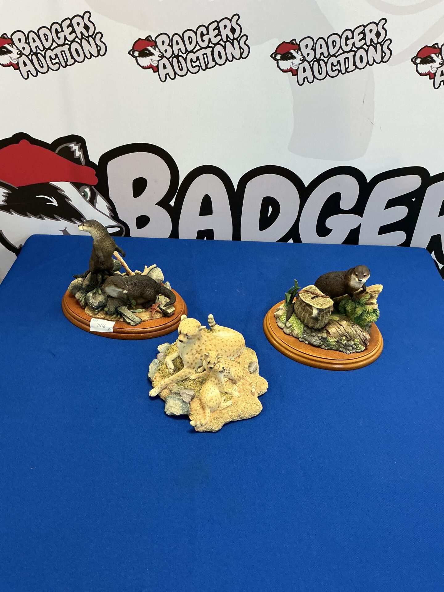 This lot includes two charming Border Studio otter figures and a striking cheetah figurine by Skerrett and Simpson. These beautifully sculpted animal figurines capture the essence of wildlife with realistic poses and detailed craftsmanship. Perfect for collectors or animal lovers, these figures will add a touch of the wild to any display.